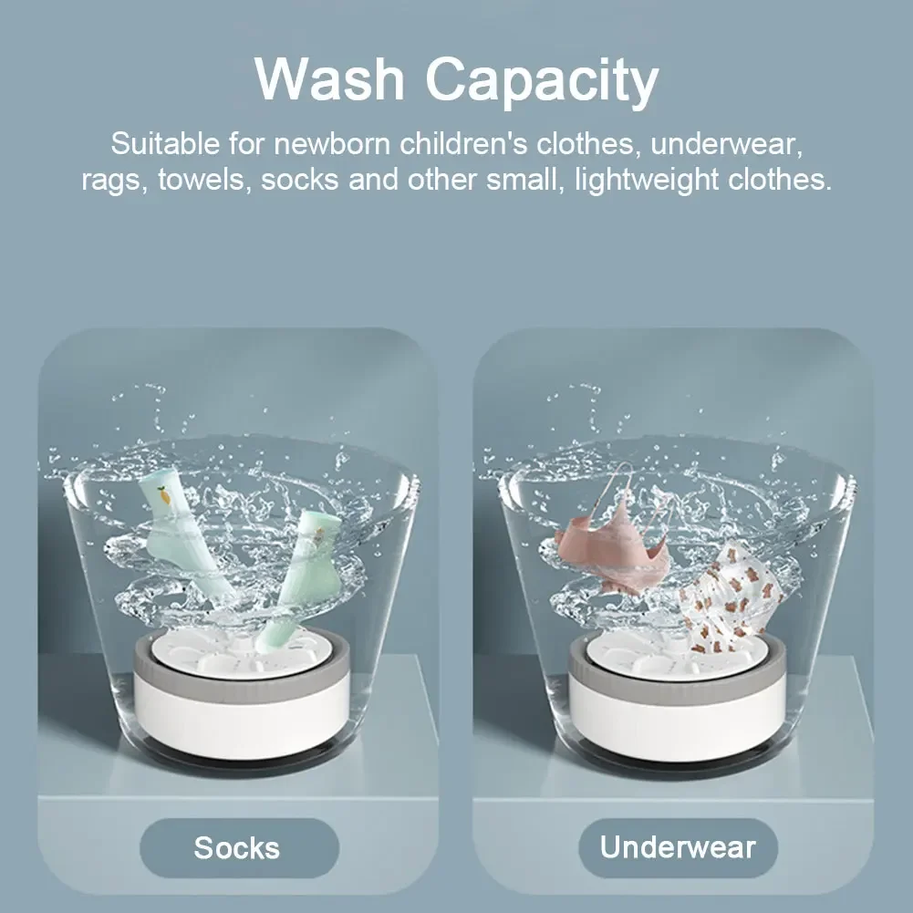 1. Versatile Cleaning Solution: Our mini turbo washing machine is for washing lightweight garments such as baby clothes, underwear, dishcloths, towels, intimate apparel, and socks. It caters to various cleaning needs, making laundry a breeze.