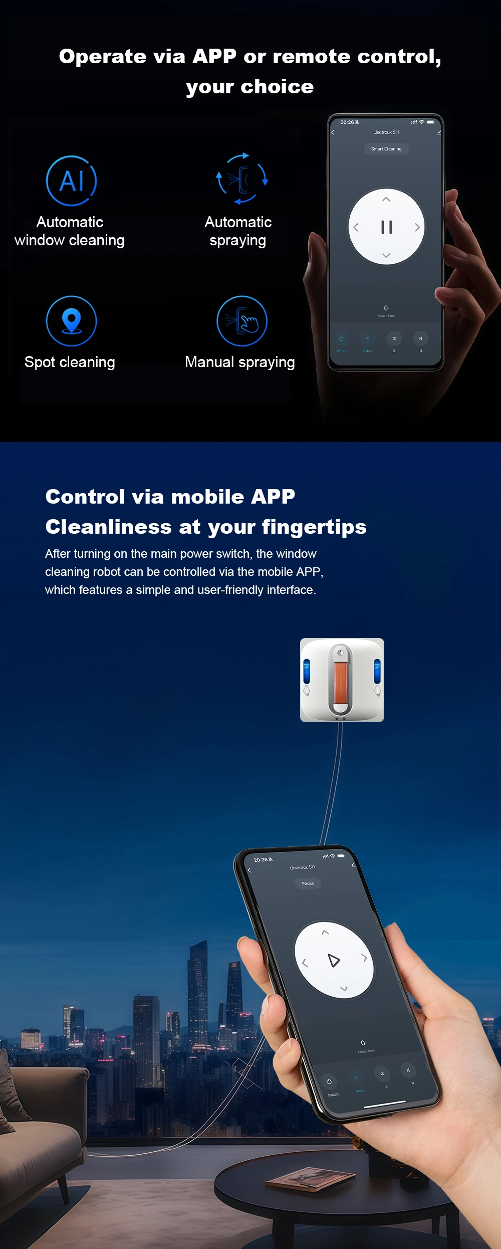 - Control Mode: Remote control or APP