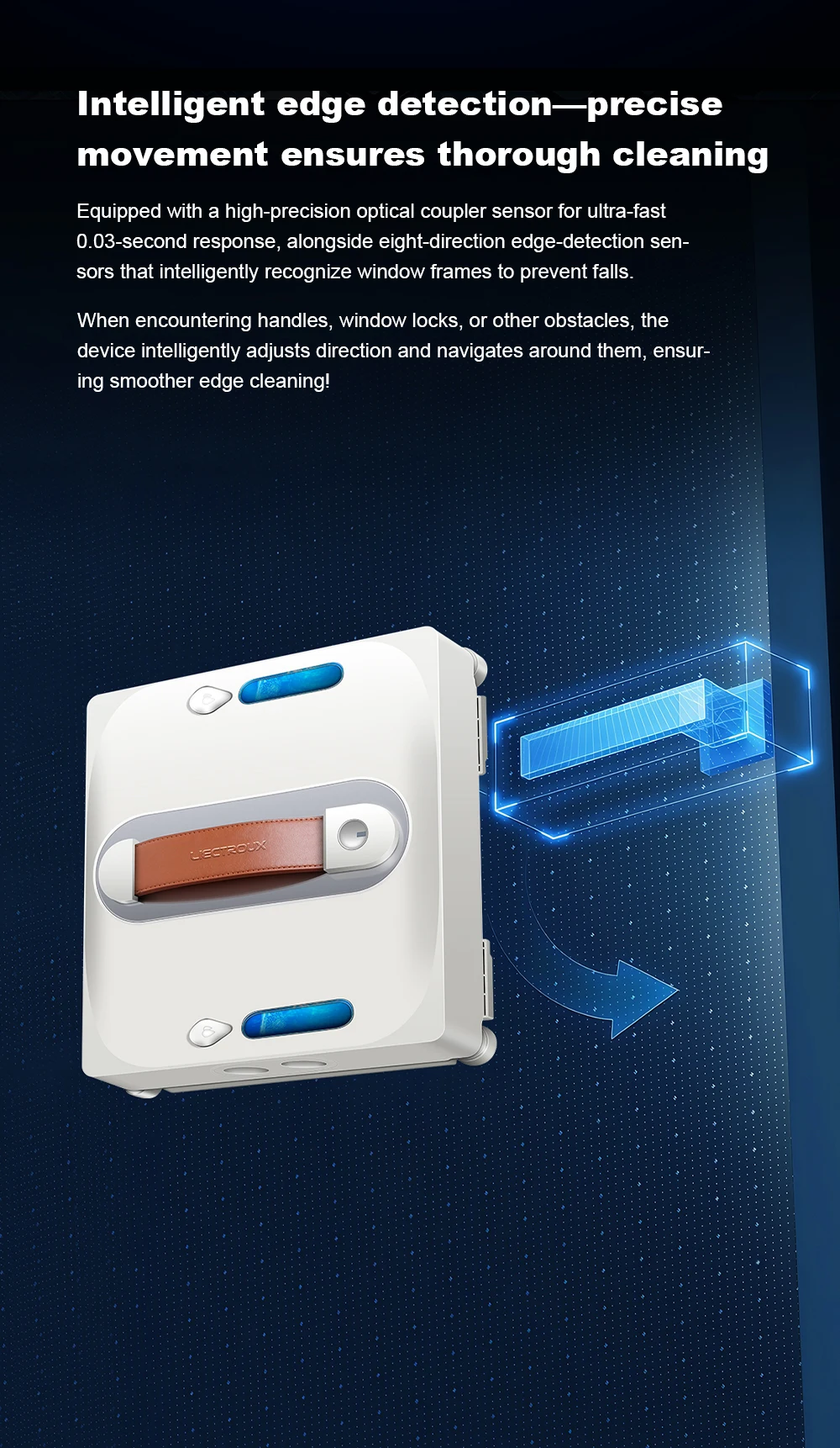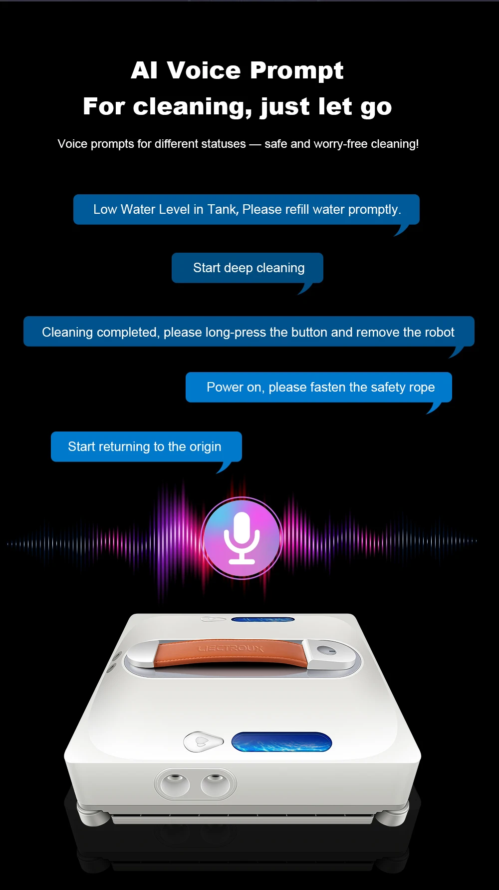 6. Once detects the leakage of air, the robot moves back automatically, always keep itself away from danger;