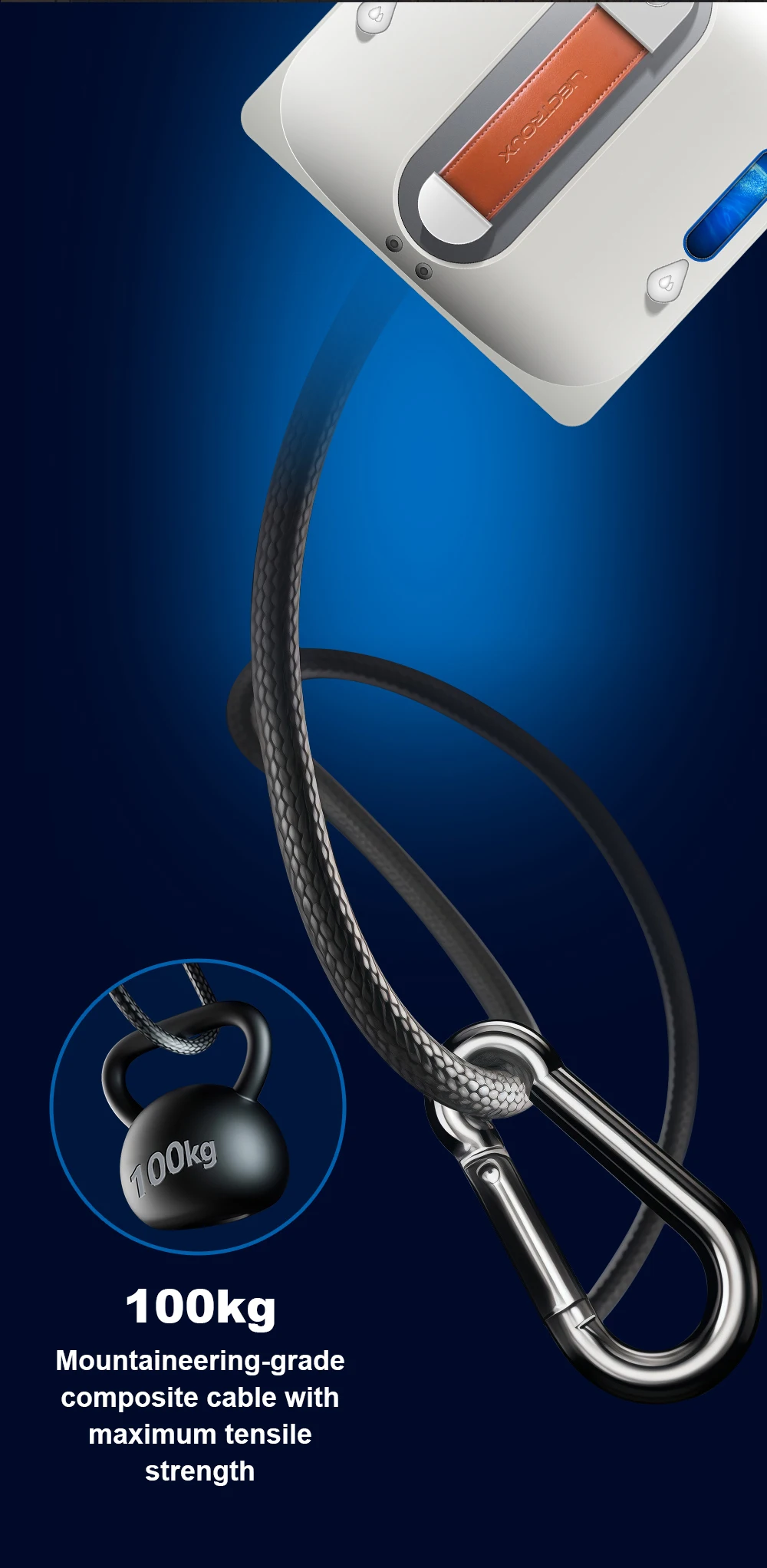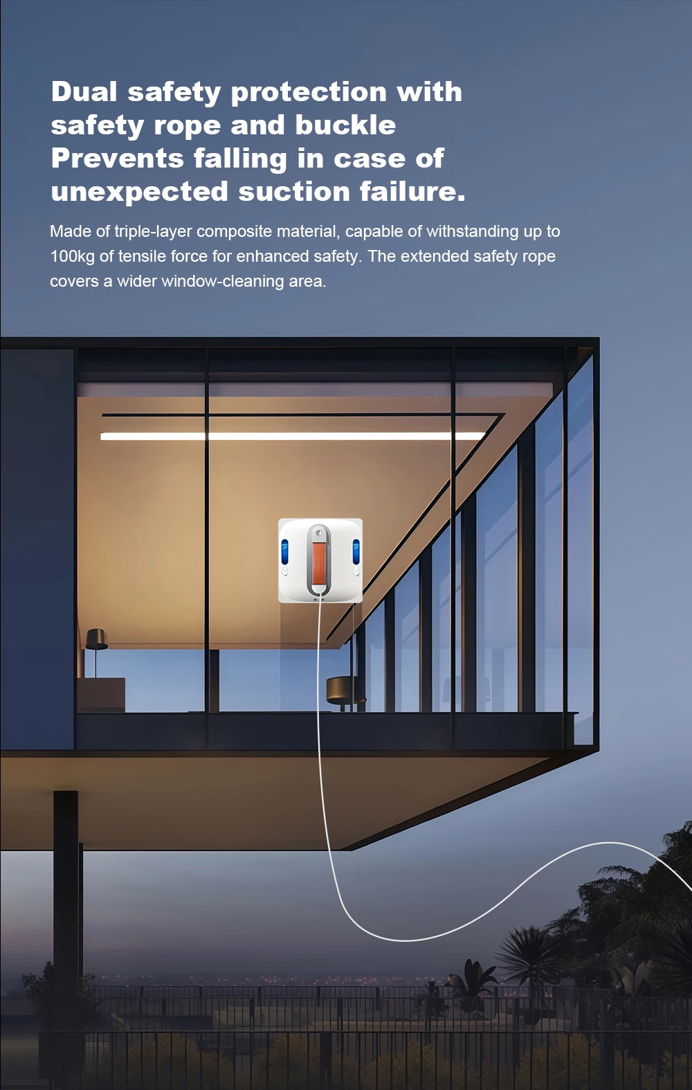 8. Long safety rope keeps the robot from falling down in critical situation;