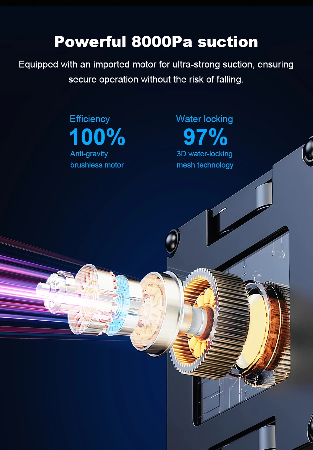 1. 8000Pa super strong suction power;