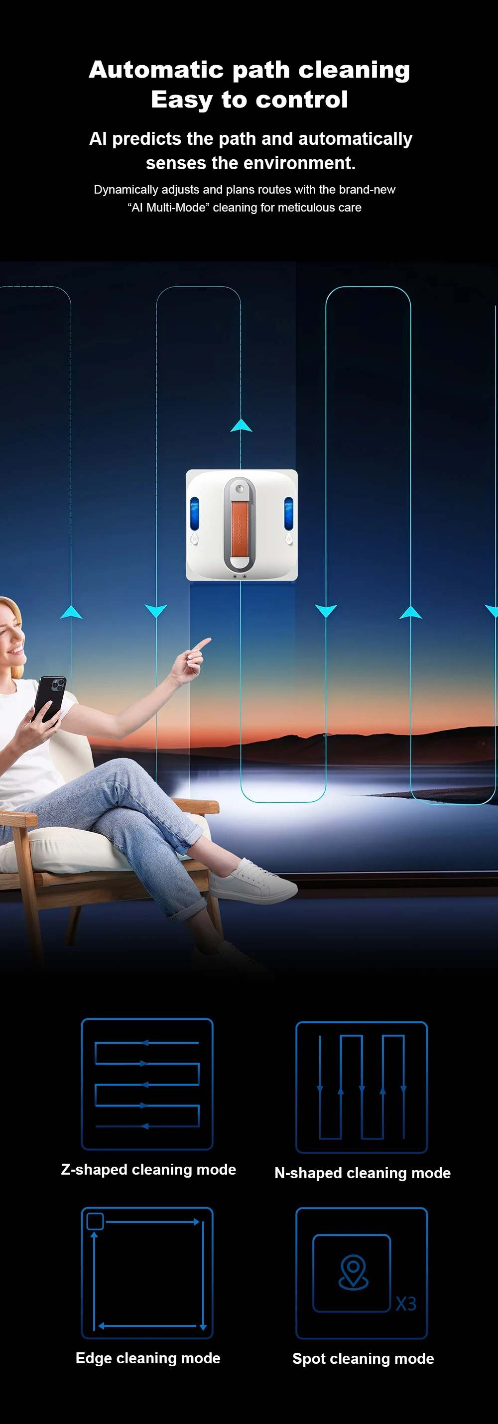 11.Gyroscope navigation withZ-shaped,N-shaped, Edge,and Spot cleaning pattern;