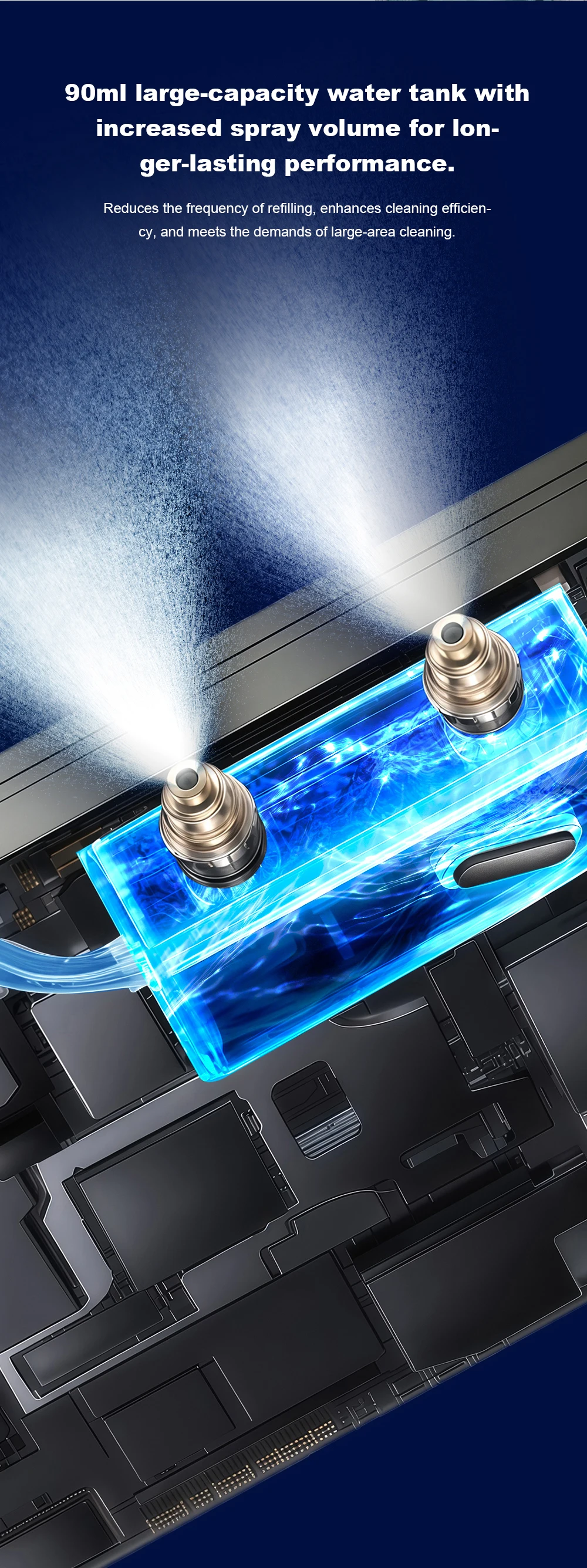 13. 3-Directional4-way atomizedwaterspray, with two nozzles on each sidefor better cleaning effect, suitable for multiple media and not easily clogged;