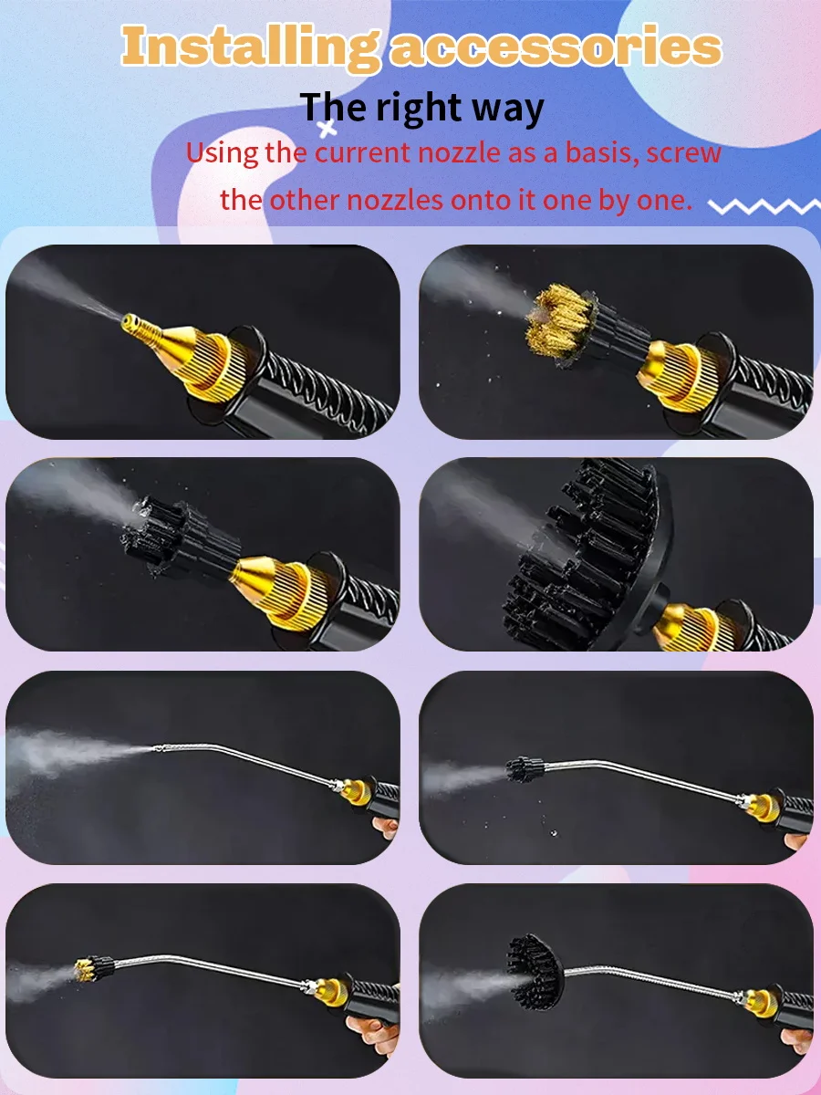 3.Lengthen the power cord and steam hose, single person operation is not labious, can meet the cleaning needs.