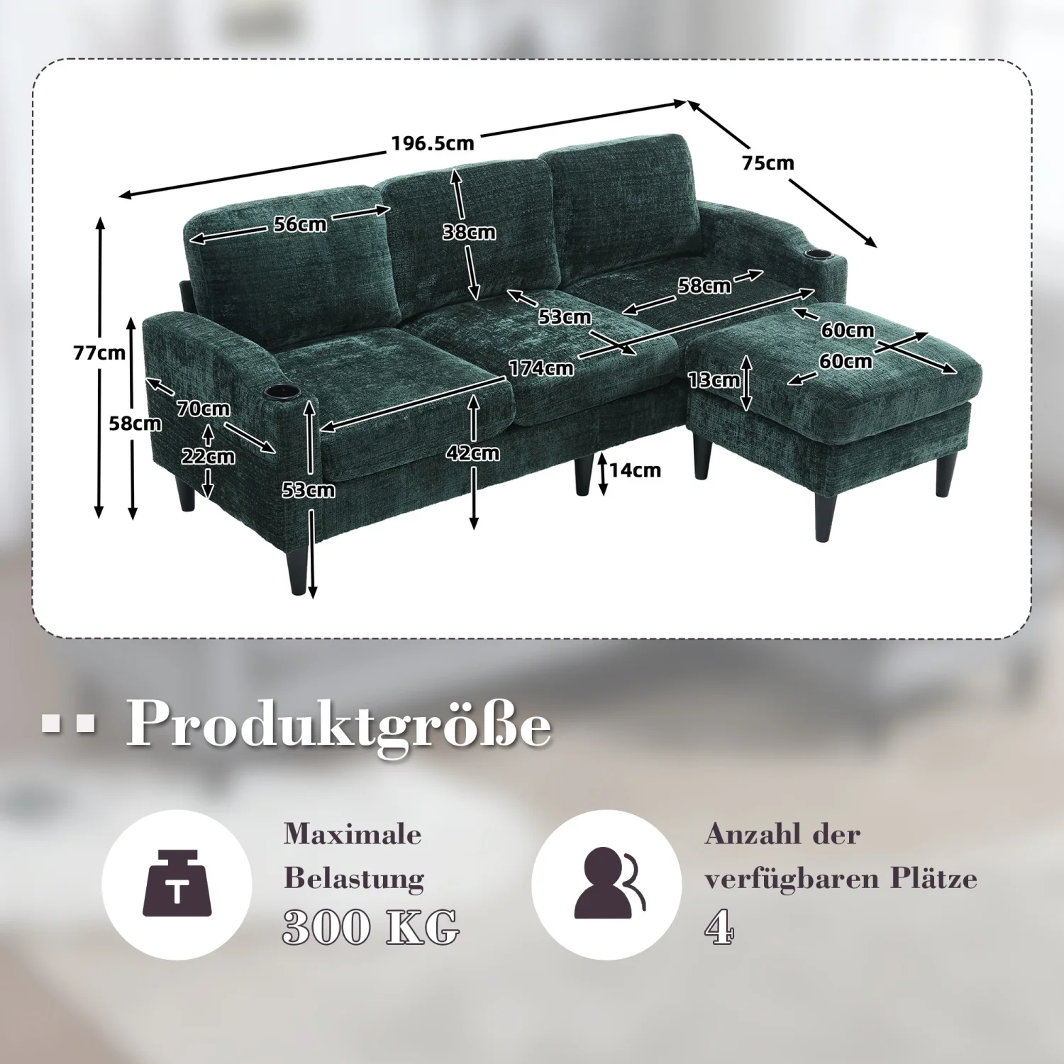 Flexibly combinable 4-seater design with stool the modular sofa with a separate stool adapts flexibly to your living situation-perfect for large and small rooms.