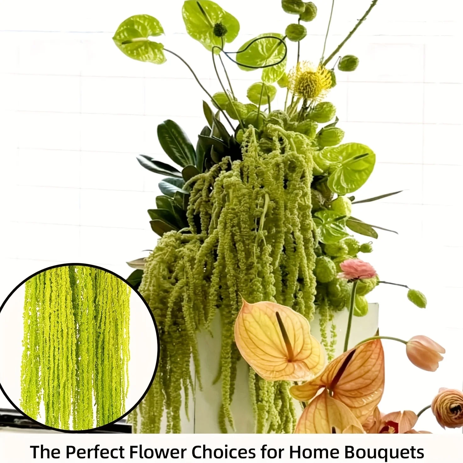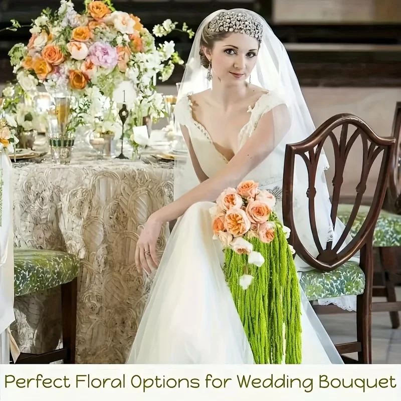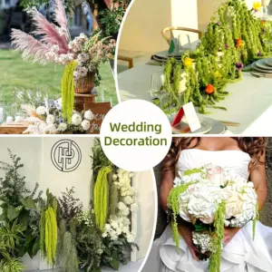 The green amaranth stems are elegantly displayed, ranging in length from 23 to 27 inches, in excellent condition, making them perfect for adding a lush green touch to various settings. Our amaranth is carefully selected, kept fresh, and dried in the sun to maintain its delicate shape. It is then dyed with safe, cosmetic-grade essential oils to create a bright green hue, ensuring both beauty and safetyWedding Decoration Ideas: The curved stems and vibrant green hues make these amaranths ideal for creating wreaths, decorating outdoor wedding arches, and arranging bouquets. Their flexible length and color allow you to incorporate rustic elements, adding a natural touch to wedding photos and creating unforgettable momentsVivid green tones ensure both beauty and safety. Integrate nature into your space: use these lush green amaranth stems to create eye-catching arrangements, or scatter them