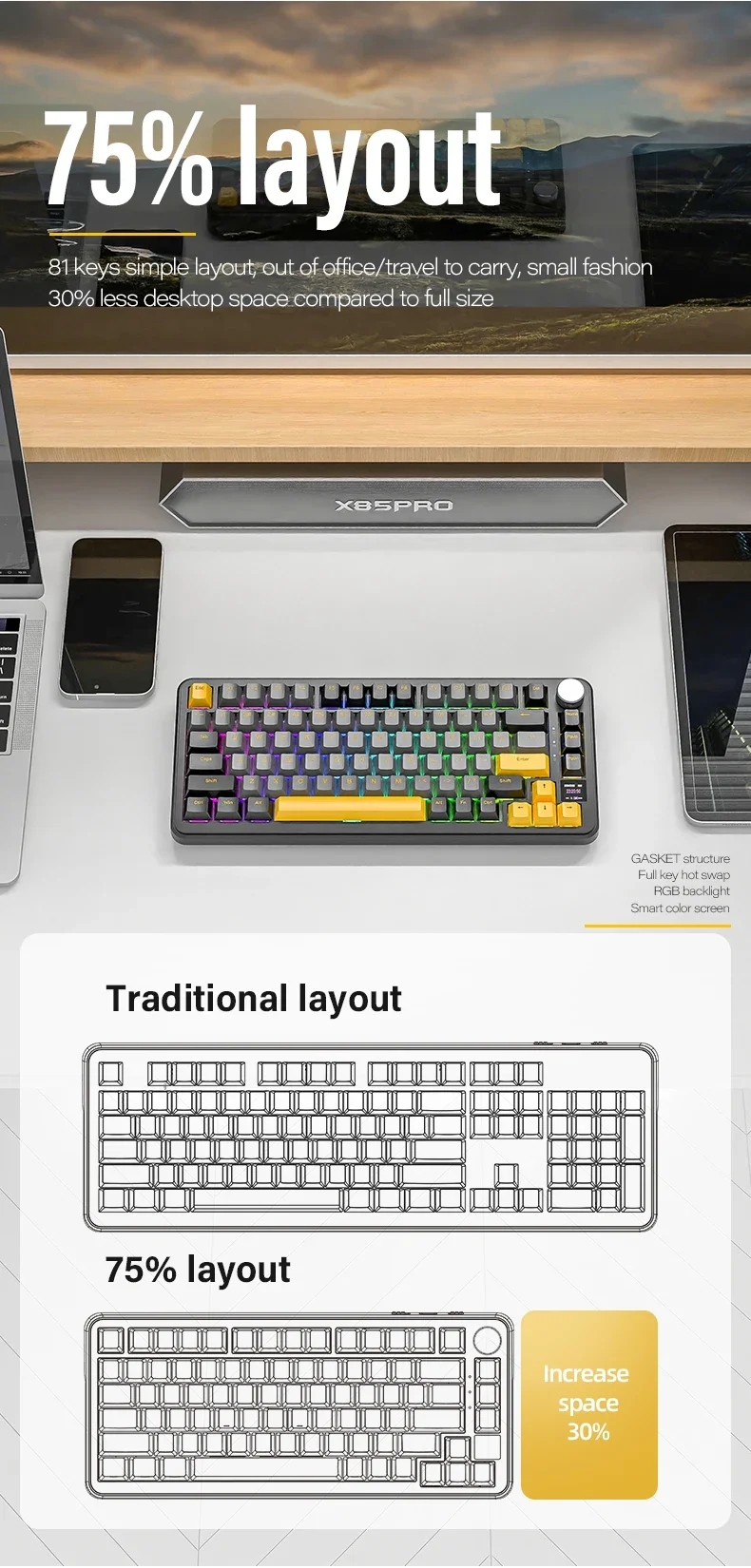 ATTACK SHARK X85 Wireless Mechanical Gaming Keyboard (82-Key, 75%)