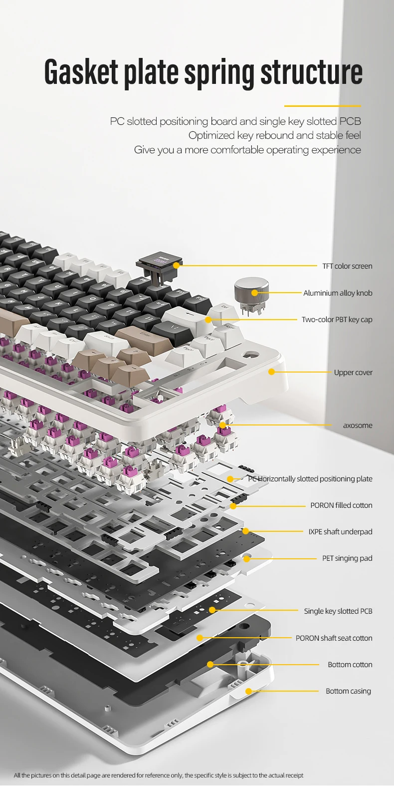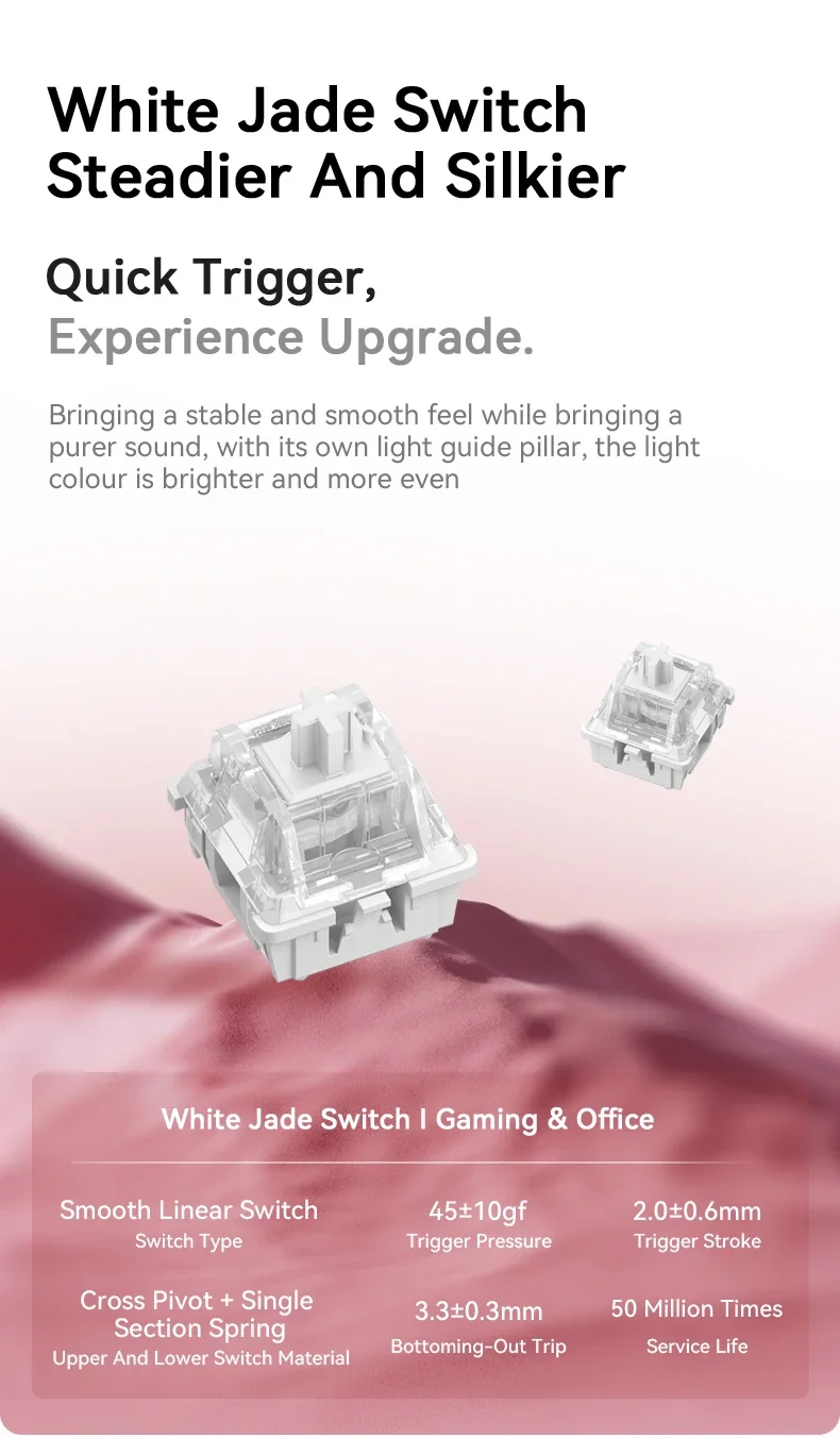 Gasket Structure: Reduces noise and vibrations with pre-lubed switches.