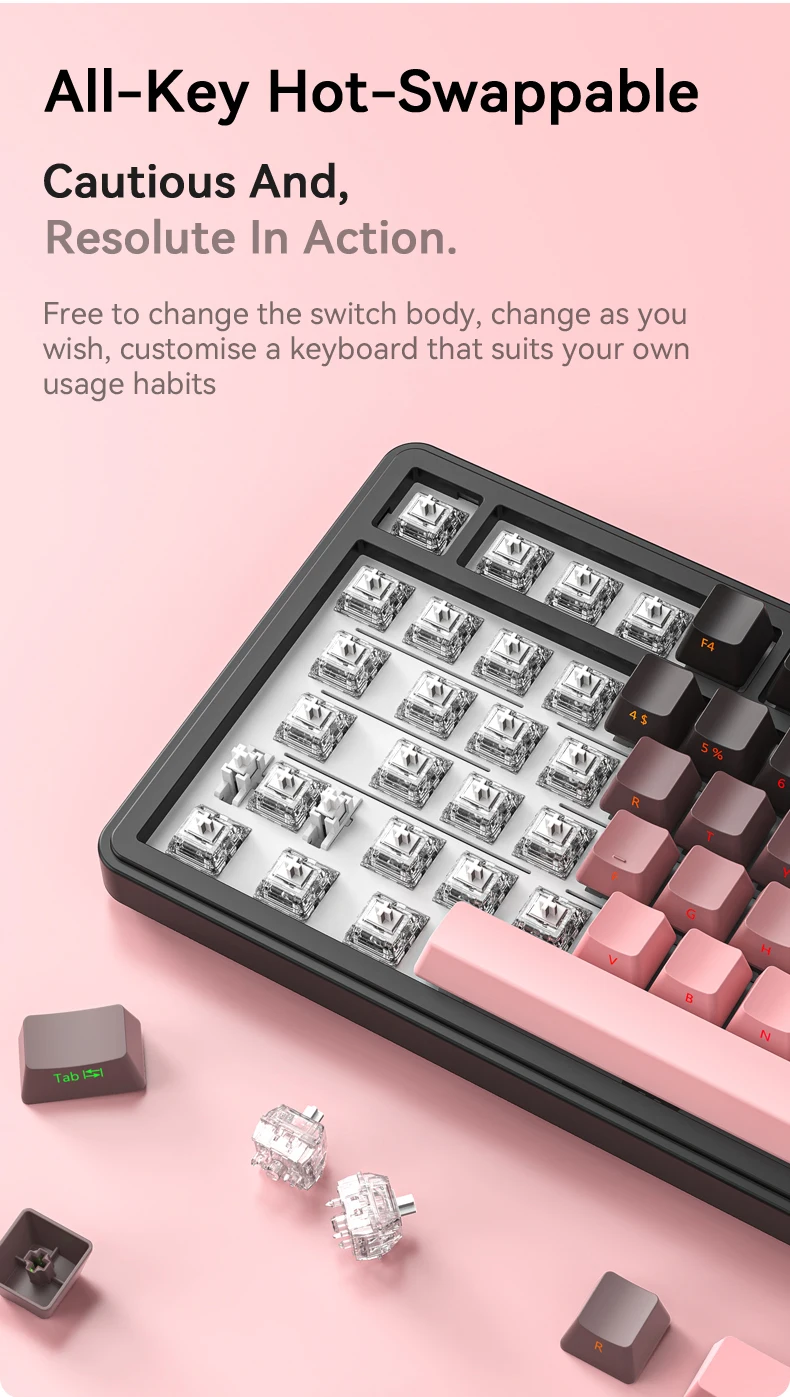 Hot-Swappable Keys: Swap mechanical switches easily.