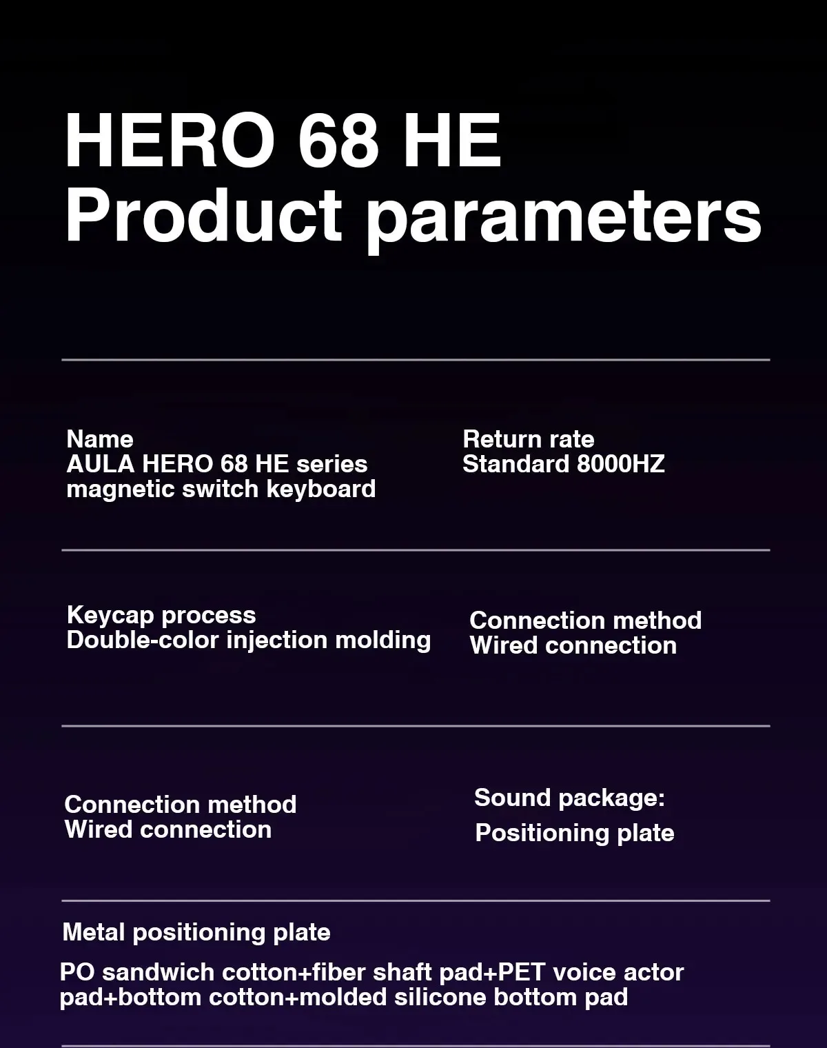 AULA HERO 68HE Magnetic Switch Keyboard Rapid Trigger 8K Return Esports Gamer Keyboard RGB Wired Gaming Keyboard