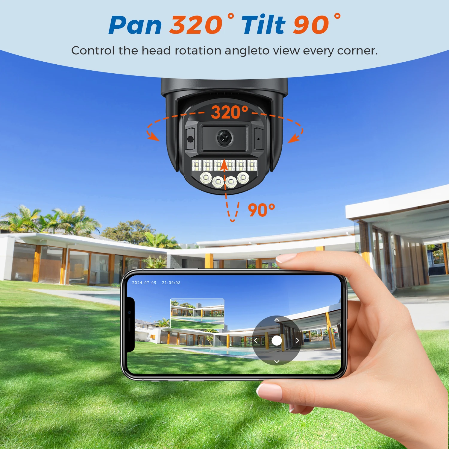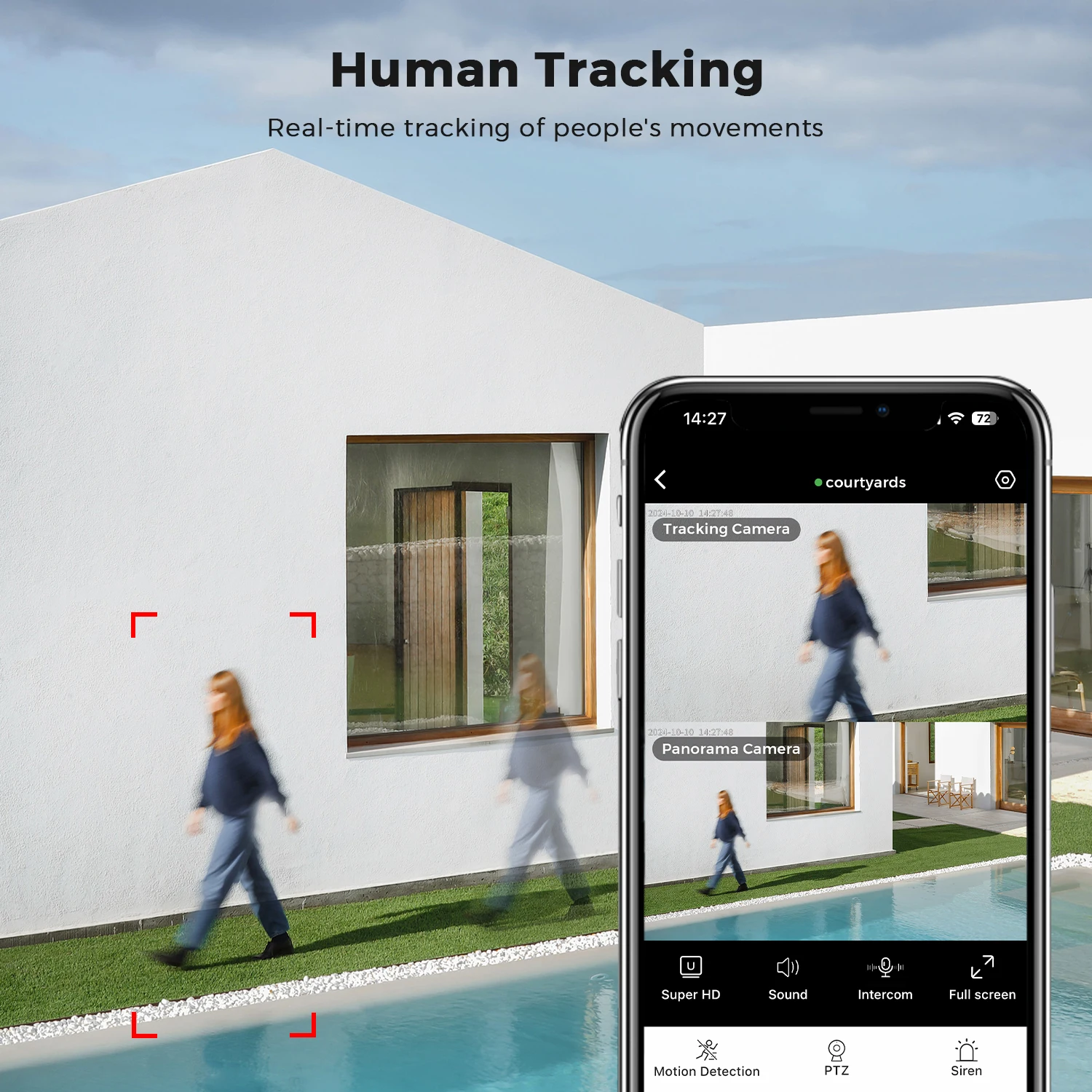 ⑤Ai Human Detection/Auto Tracking/Color IR Night Vision/IP66 Waterproof/SD Card Storage/Live Call