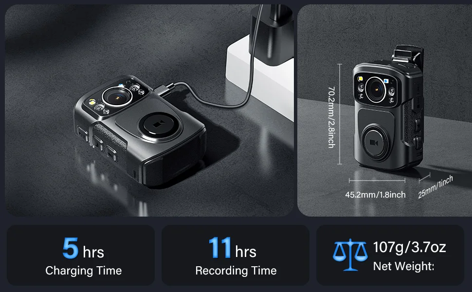 256GB Body Cameras for Law Enforcement With IR Feature: The B4K5 model is equipped with four IR lights, enhancing visibility in low-light conditions such as night walks, patrolling, and self-defense scenarios. Tailored for law enforcement needs, this body camera ensures optimal performance during nighttime operations.