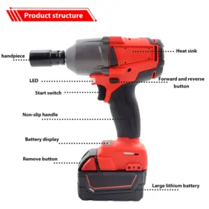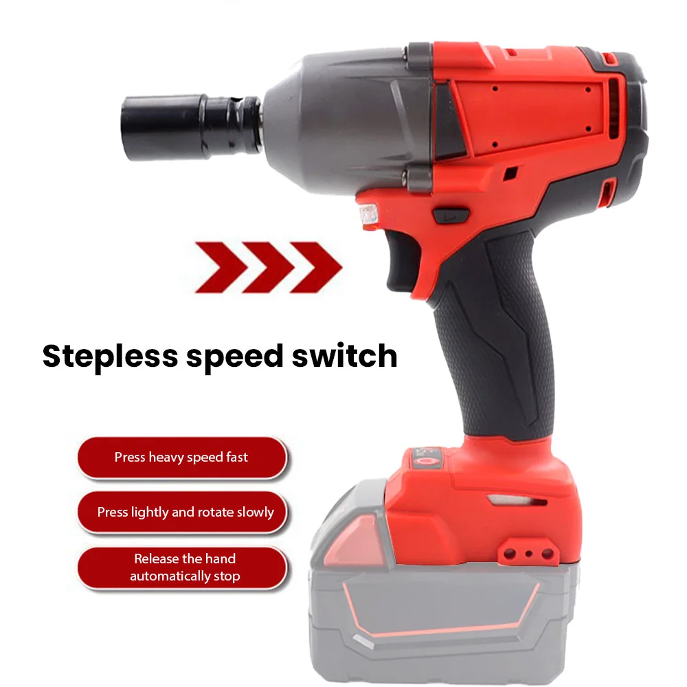 Brushless 1300N.M Torque Rechargeable Electric Impact  Wrench 1/2 Inch Cordless Wrench Screwdriver Suitable For 18V Battery Power