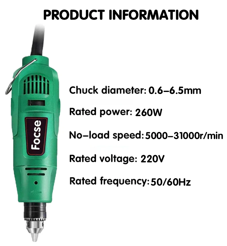 FOCSE mini DIY electric drill is a multifunctional tool that combines a drill bit, an engraving machine