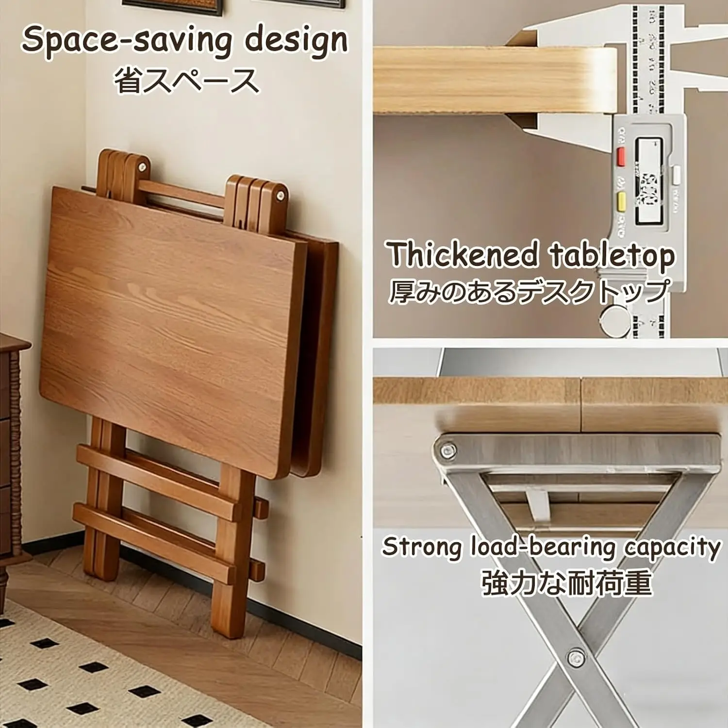 1. Our folding tables are made of high-quality wood, and the durable metal legs provide a sturdy and durable structure. Easy to clean and maintain, simply wipe away spills with a damp cloth.