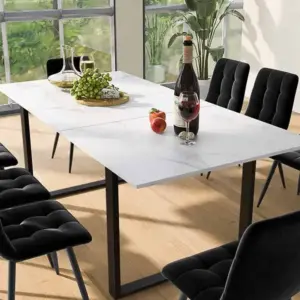 Produkthighlights: Tragfähigkeit von 60kg, modisches Metallgestell, MDF-Tischplatte mit Marmoroptik, zeitlos elegant. Beschreibung: Unser klappbarer Esstisch ist nicht nur ein Blickfang in Ihrem Zuhause, sondern auch äußerst belastbar. Mit einer Tragfähigkeit von 60kg und einem eleganten Design aus modischem Metallgestell und MDF-Tischplatte mit Marmoroptik, fügt er sich harmonisch in jeden Raum ein. Dieser zeitlos elegante Tisch ist die perfekte Ergänzung für Ihre Esszimmermöbel.