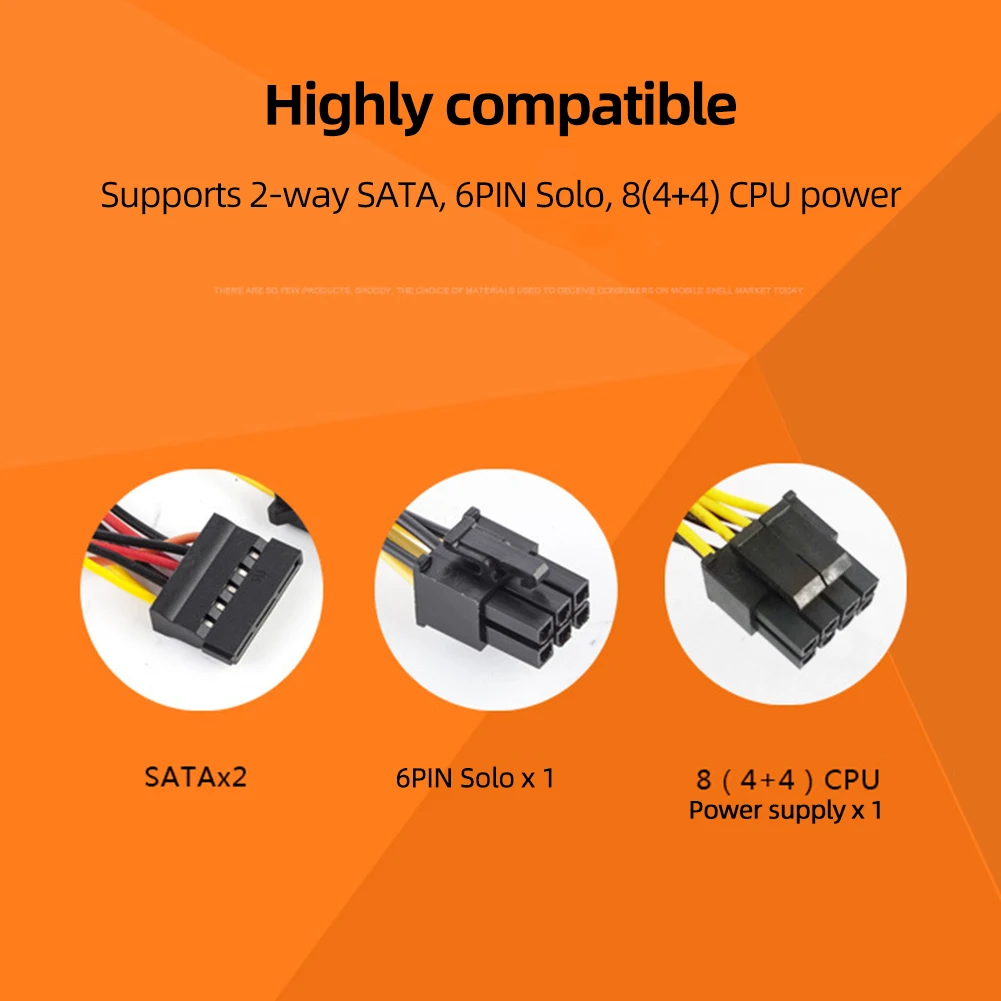 2. High Compatibility: This computer power supply supports 2 SATA ports, 6-pin graphics cards, and 8 (4+4) CPU power connectors, making it highly compatible with various computer components.