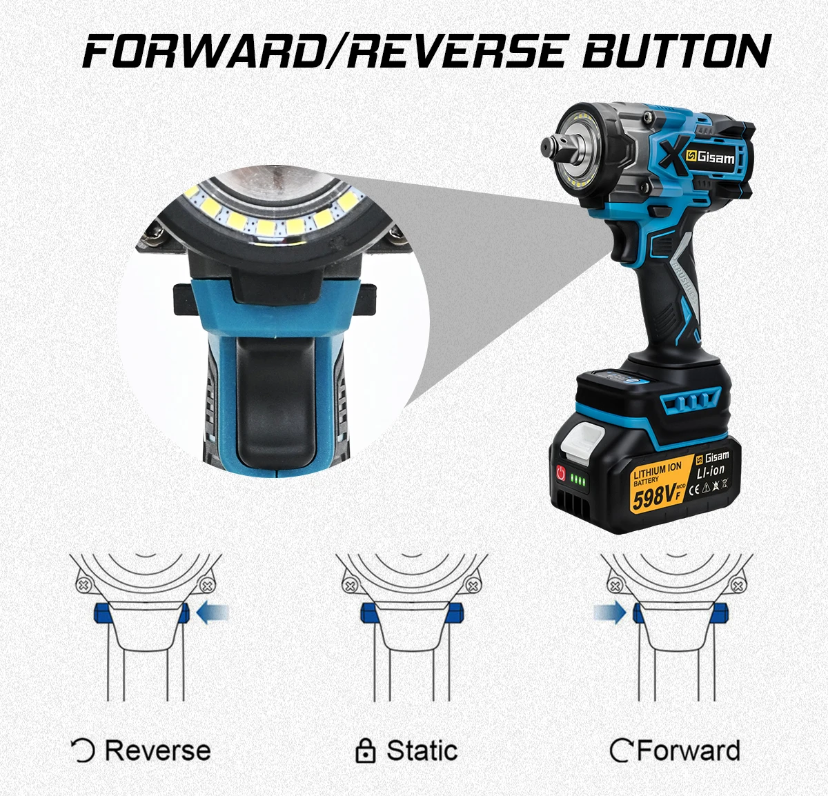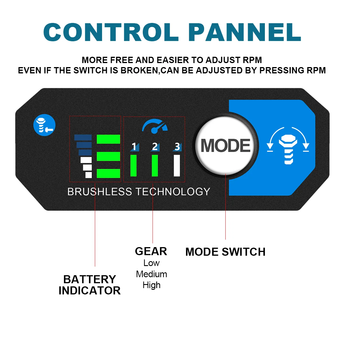 -900N.M high torque, stepless speed change switch.