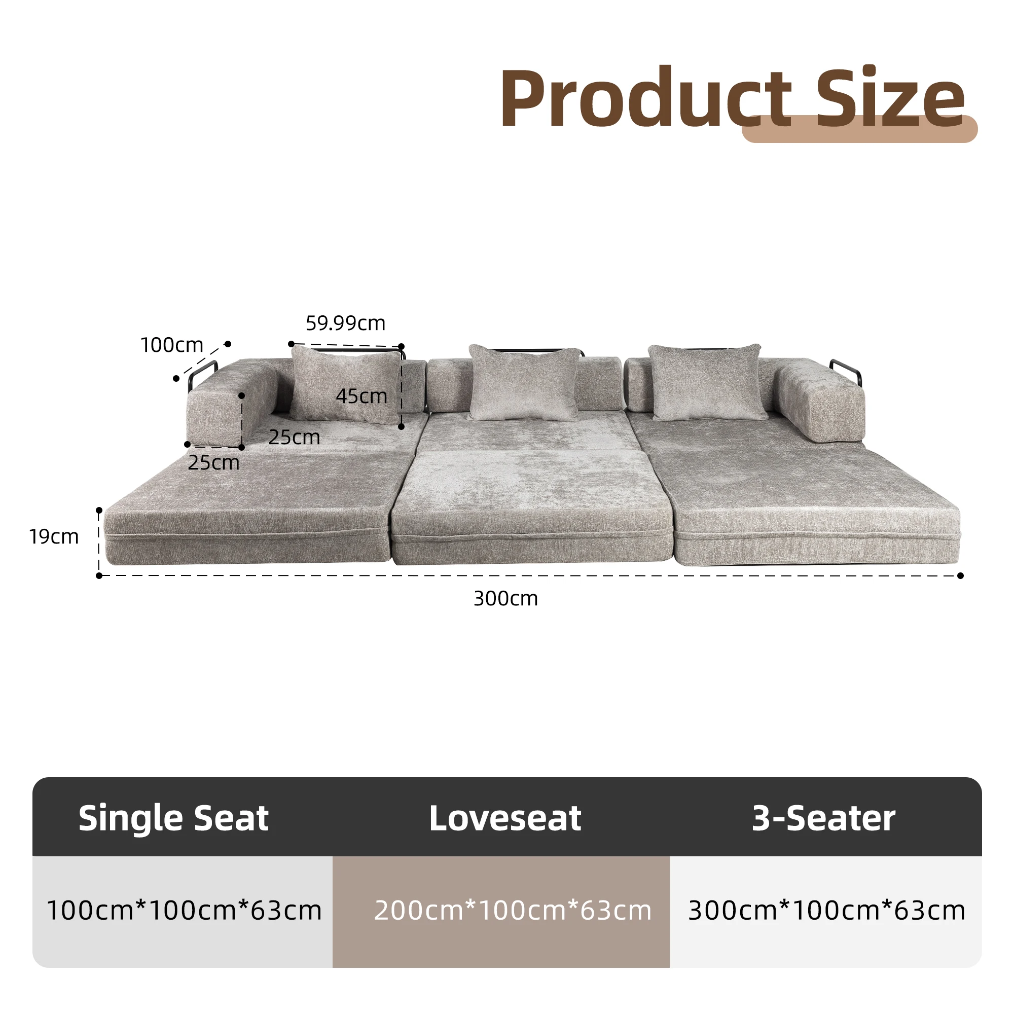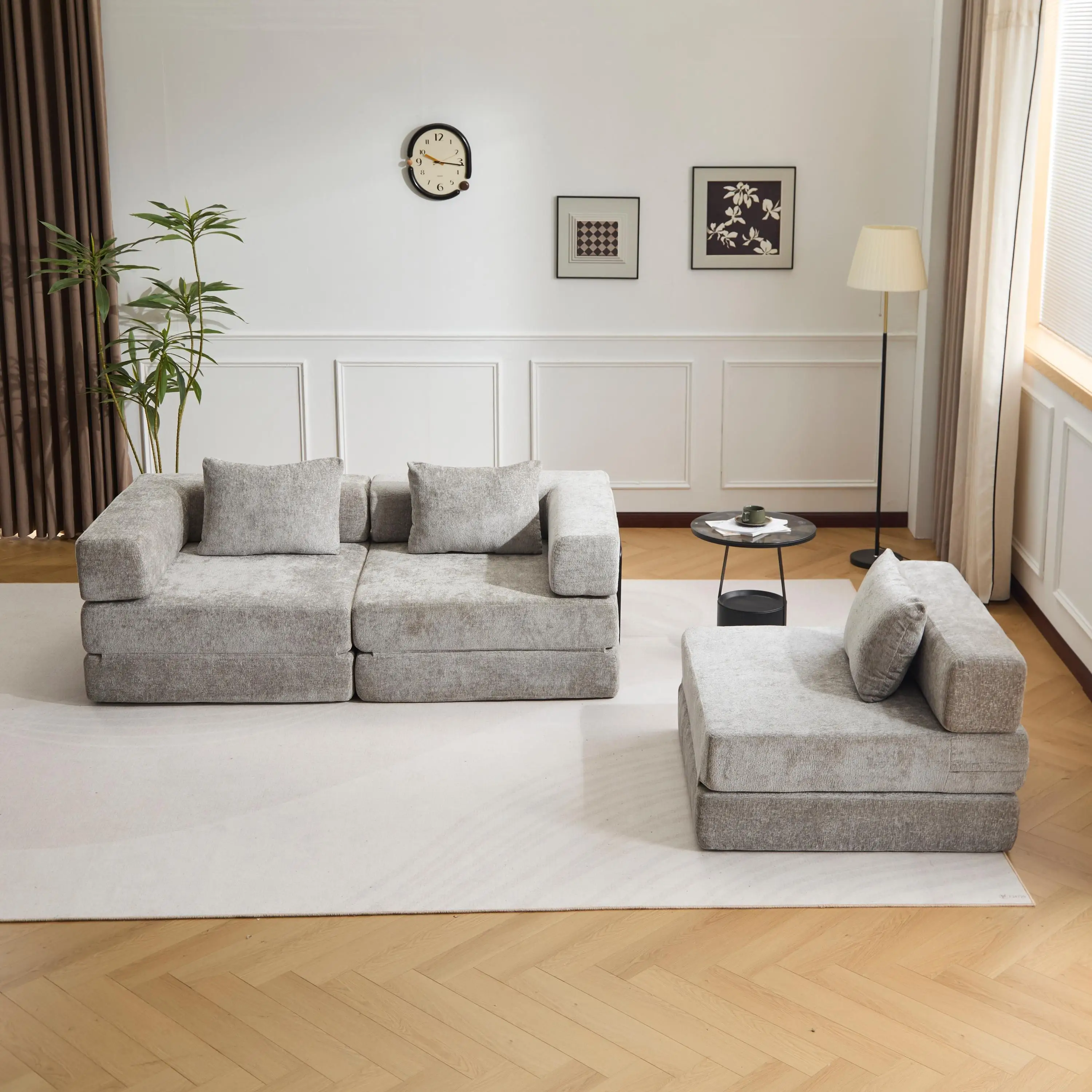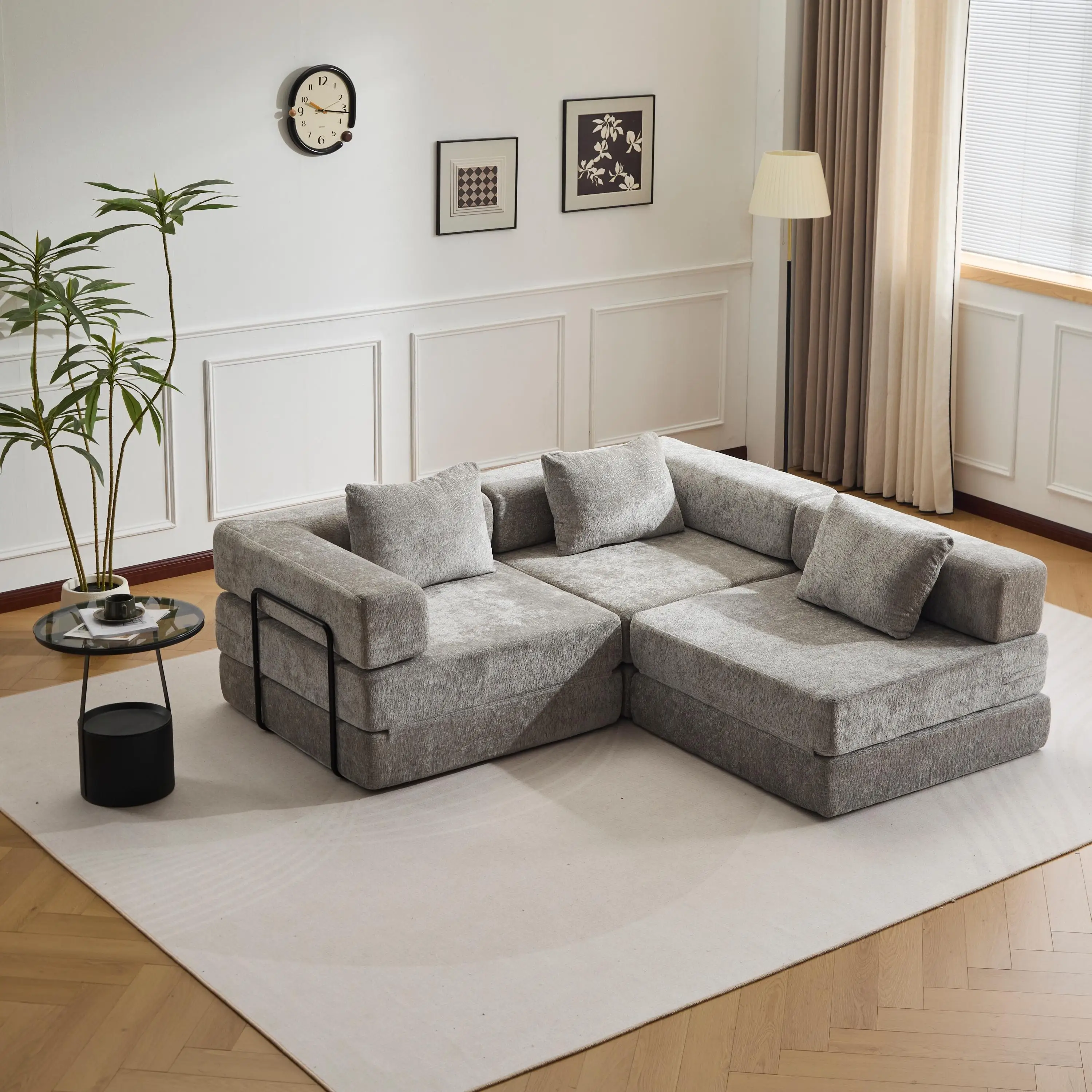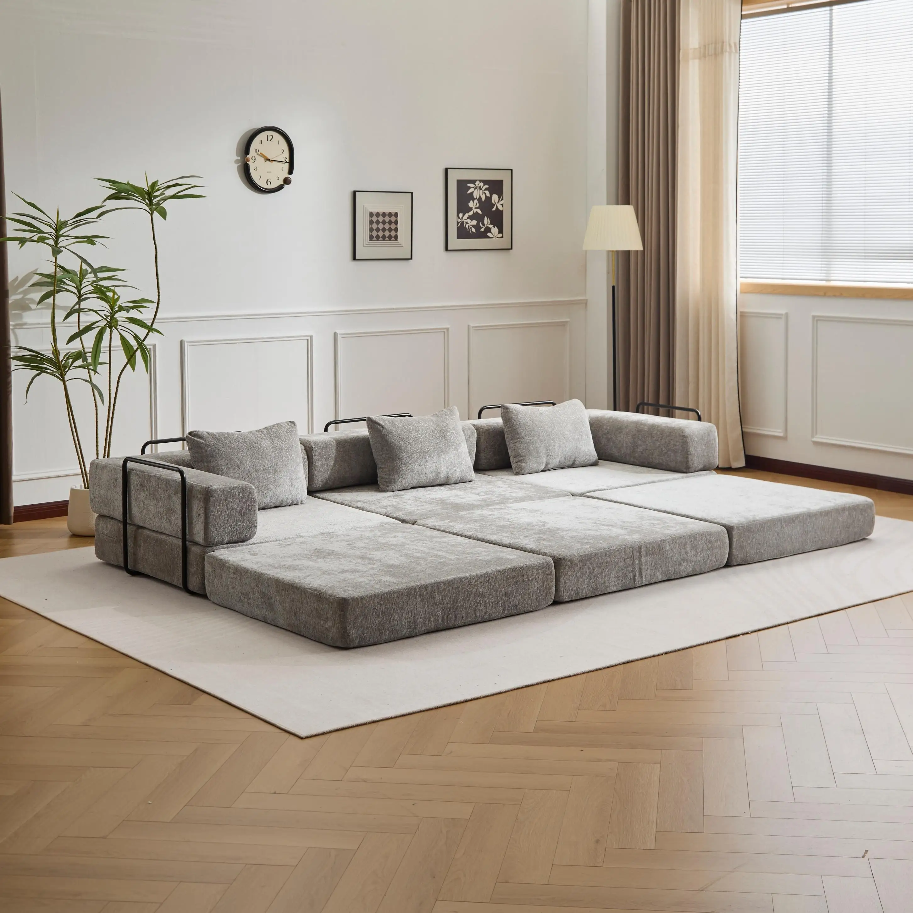 【DIY Modular Sectional Design】: Easily rearrange and combine sections to create multiple configurations—chaise,a spacious 3 seaters couch, or a cozy sleeper floor bed. Perfect for changing spaces or multifunctional rooms.