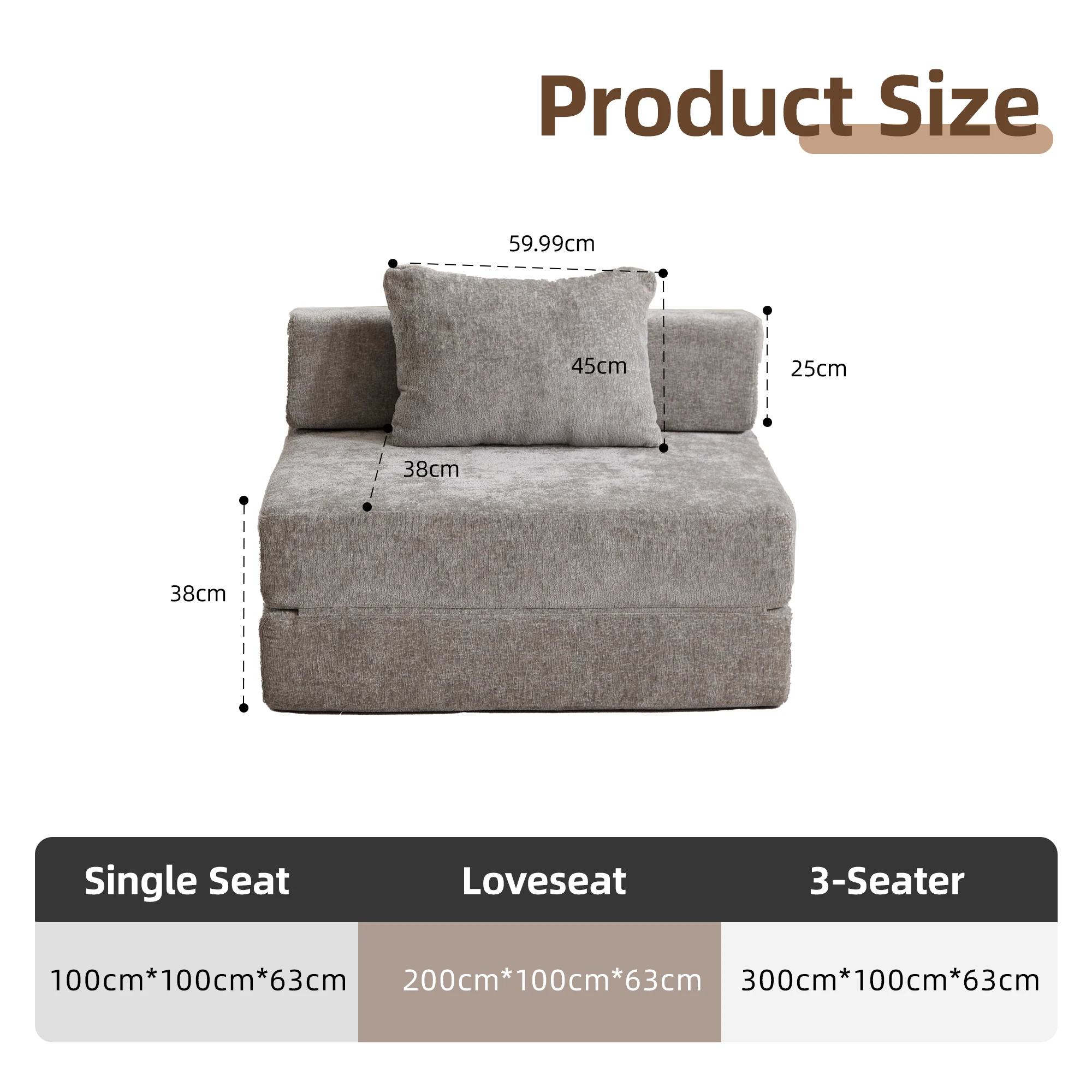 【High-quality Chenille Fabric 】The texture are very comfortable, while also retaining the high breathability and softness of the cloth, when you touch it, you can feel it is different to the normal cloth fabric, it is fashion and colorfast characteristics, easy to clean will be your favor. The contact surface of the fold down sofa are used Chenille fabric, it is as popular textile materials, abrasion resistance is very high and it is durable.