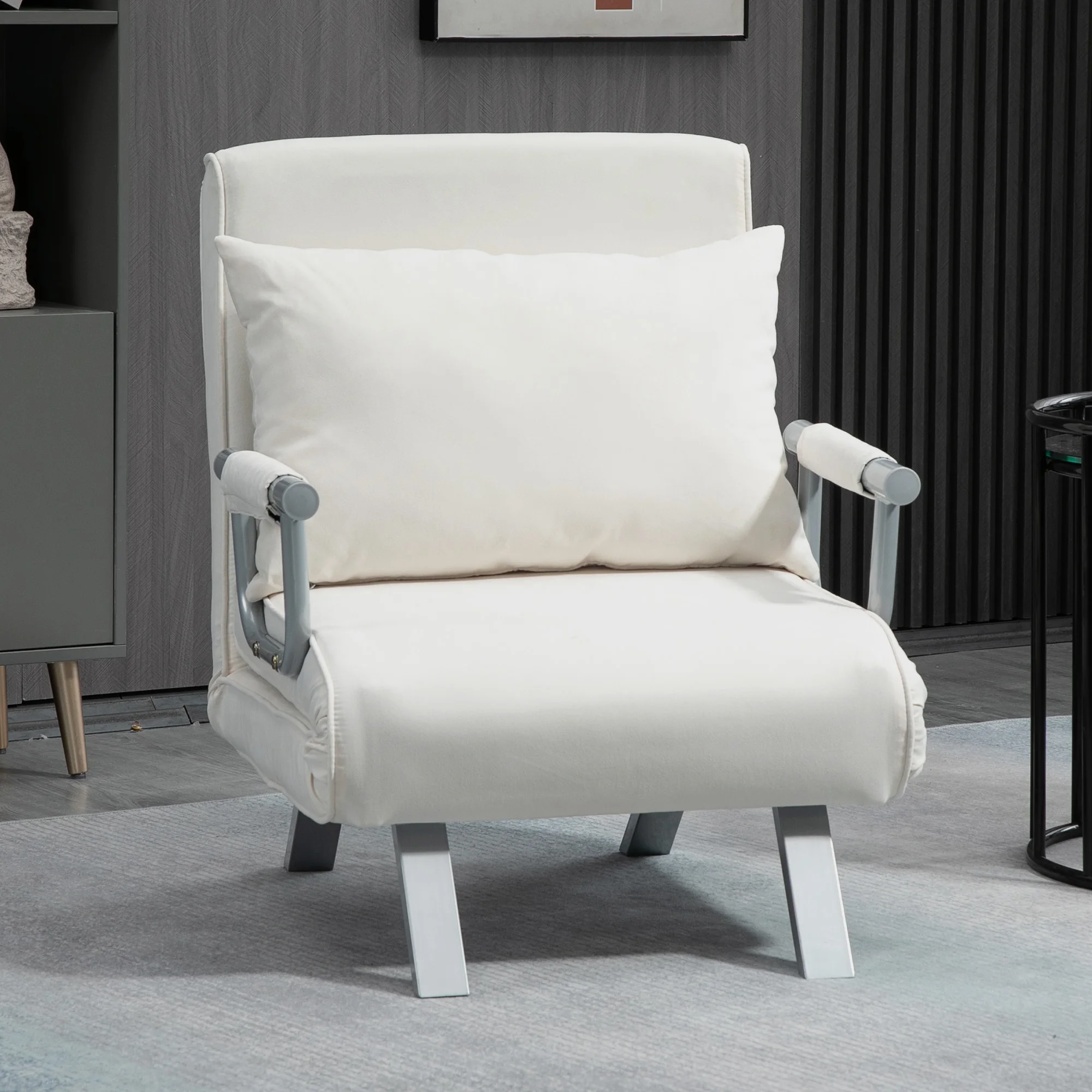 “this 1-seater sofa bed is a perfect solution to save space.It will provide you with moments of maximum relaxation and comfort.Thanks to its modern design and quality materials, it will easily adapt to any decoration style in the bedroom, living room or office.It is extremely versatile, as the backrest is adjustable in 5 positions so you can find an optimal position.In addition, it easily converts into a bed in just a few seconds.features:● Modern sofa bed for living room or bedroom