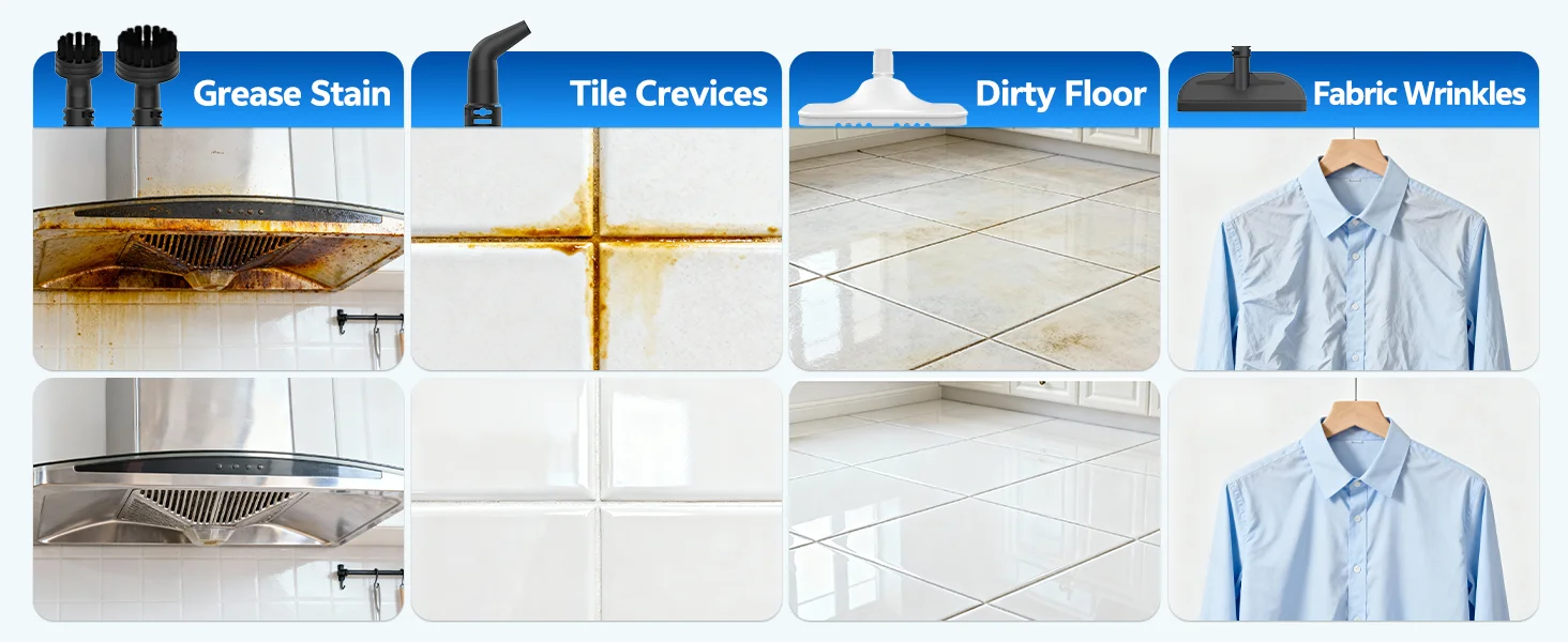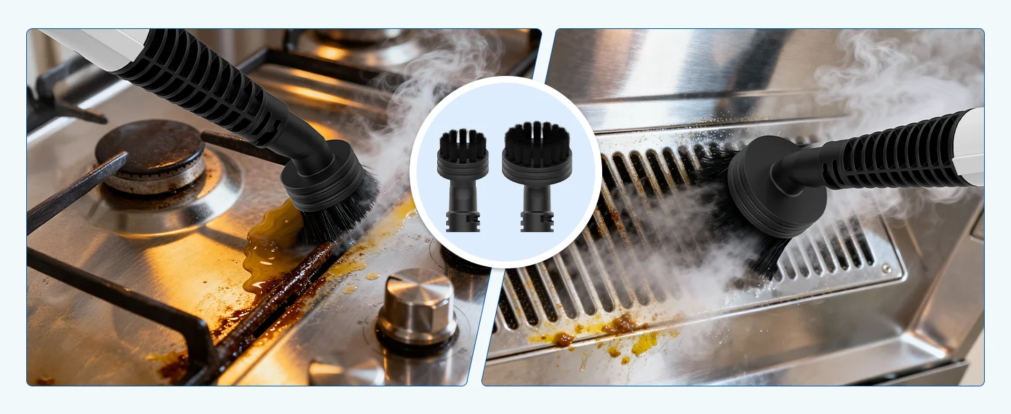 High-Temperature Steam (>212°F)-Melts tough grease, grime, and dried stains without chemicals.