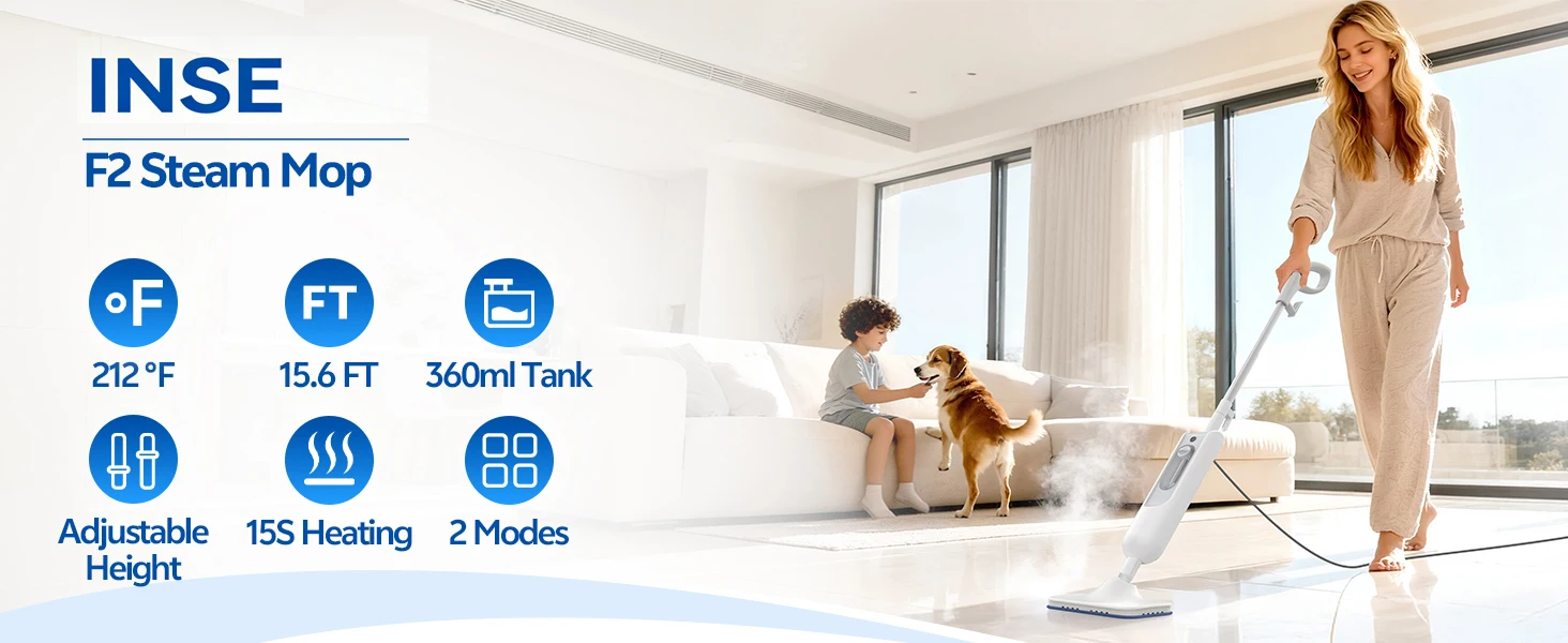 INSE F2 Steam Mop Powerful 12-in-1 Handheld Scrubbing Steam Cleaner High Temperature Detachable Steam Mop for Hardwood Carpet