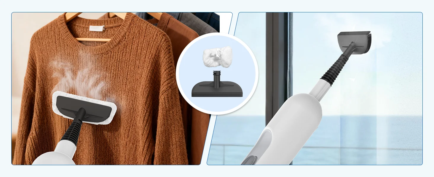 Whole-Home Cleaning-F2 mops for floor cleaning features a detachable handle and 12-in-1 multifunctional accessories. It easily handles floors, clothing wrinkles, glass surfaces, furniture dust, carpets, sinks, and narrow corners, achieving true multi-purpose cleaning.