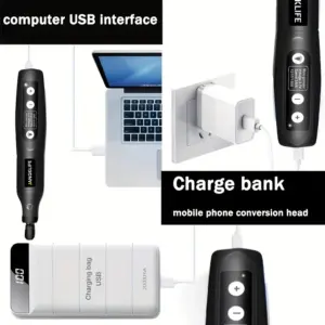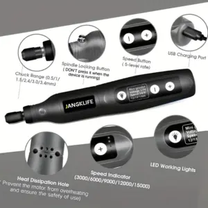 This power tool come with 5 collet sizes(1mm,1.6mm,2.35mm,3mm.3.2mm), to fits different suitable accessories and it is easily changed.
