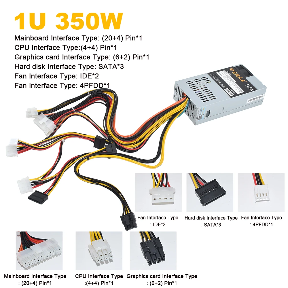 JULONGFENGBAO New ATX 350W PSU For NAS POS Cash Register Machine 180-264V 24Pin For Mini ITX Case Small 1U Flex PC Power Supply