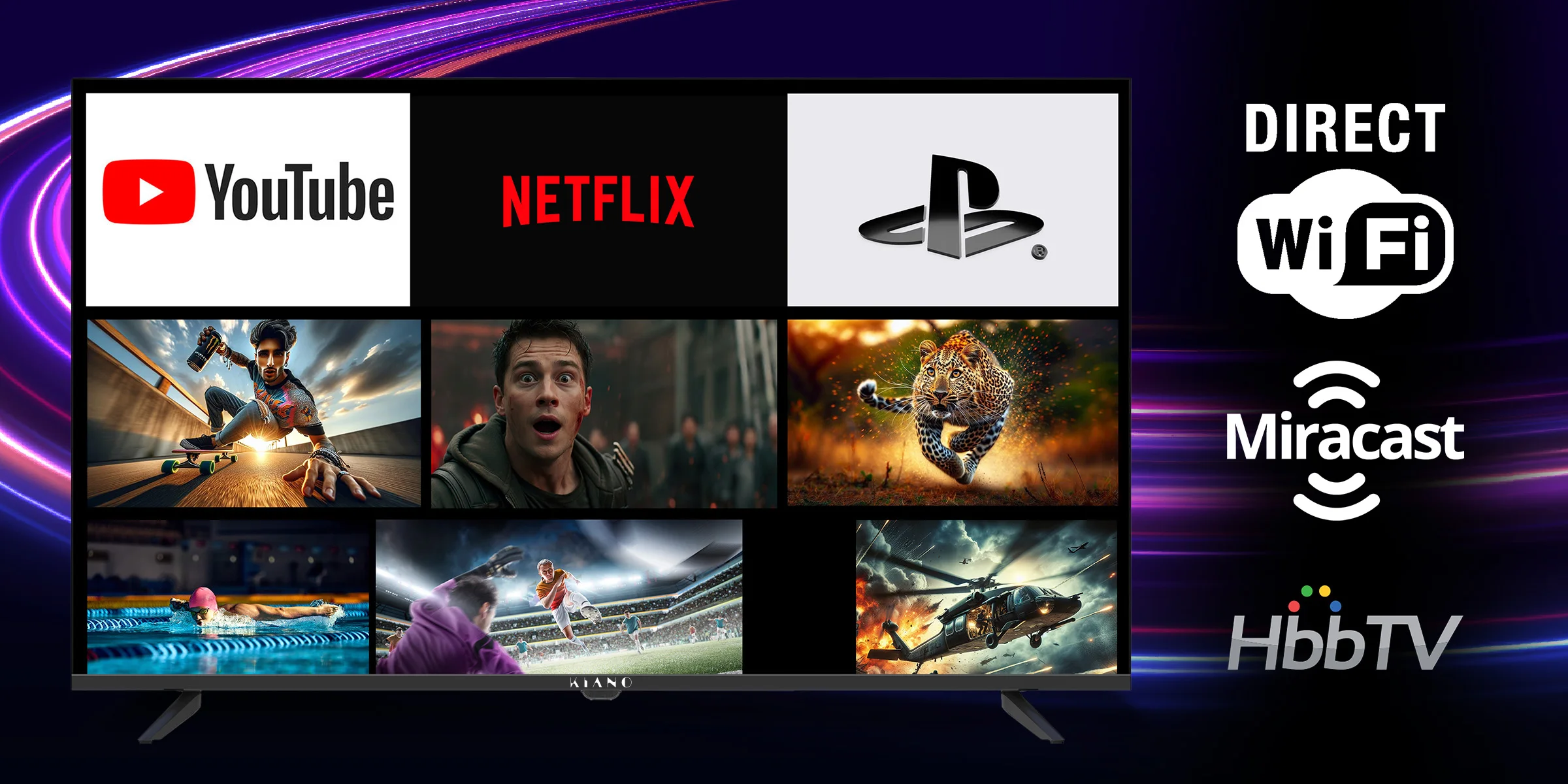 Kiano TV probably knows how to use it intuitively even before it arrives in your home. We use the Smart TV system based on Android, perfectly known from mobile phones. So everything is familiar, clear and readable from the beginning. You have at your disposal dozens of convenient tools and a full overview of entertainment: Netflix, YouTube, Facebook, Twitter, SmartTV, WiFi Direct, Miracast, Web browser, USB recording and playback, TV channel guide and many additional functions.