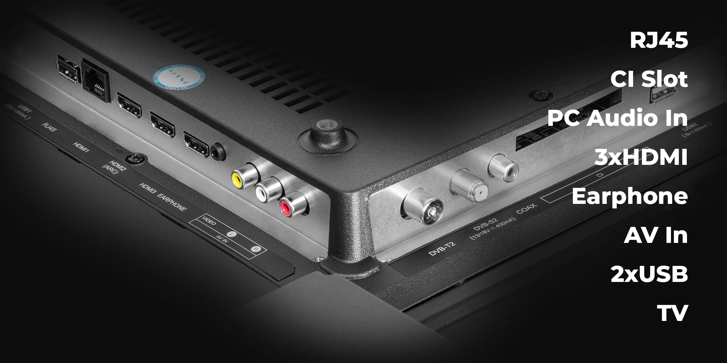 • CONNECTOR: RJ45, CI Slot, PC Audio In, 3xHDMI, Headphone Output, AV In, 2xUSB, TV