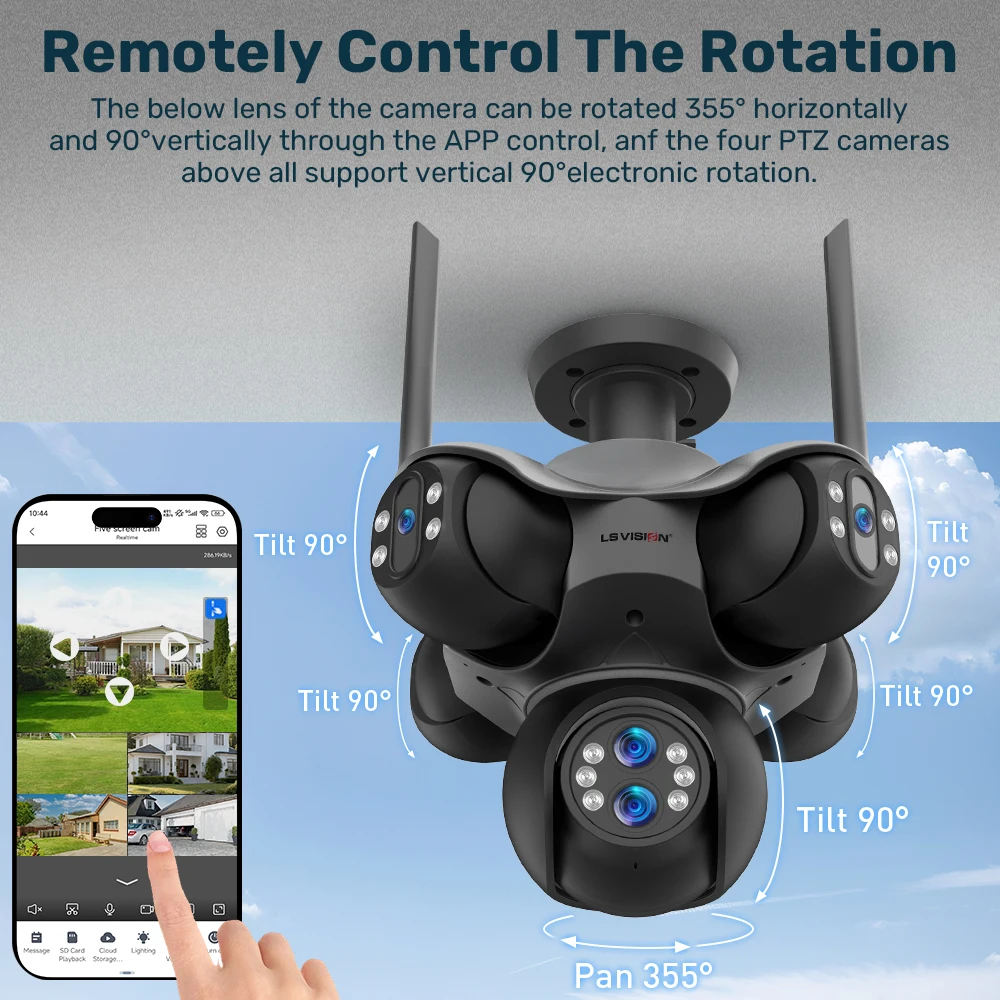 * You can remotely control the camera rotation on the mobile phone APP, All five pan tilt zoom lenses support vertical rotation through a mobile application (FF Video),