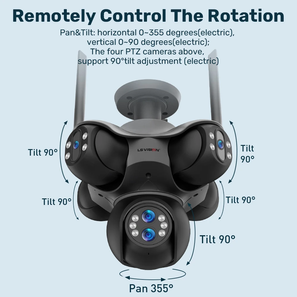 The four PTZ cameras above, support 90° tilt adjustment (electric)