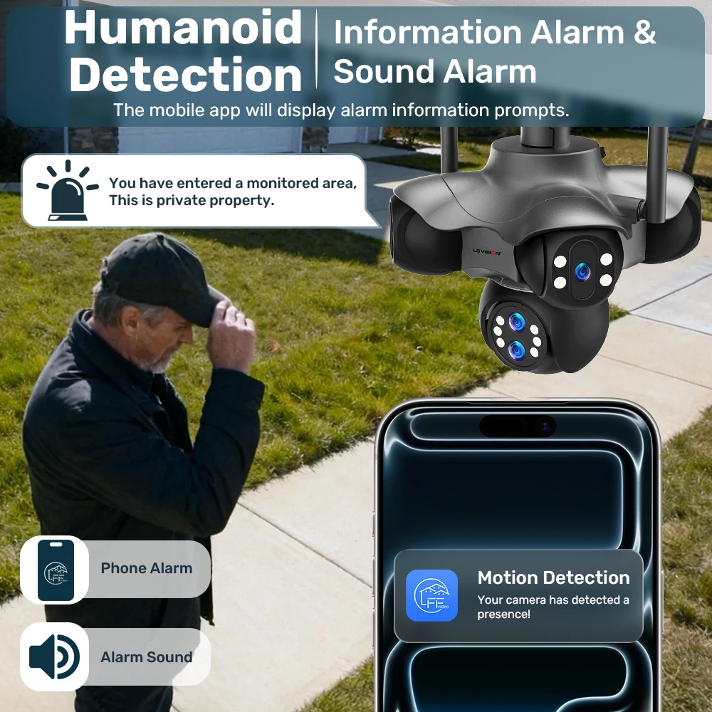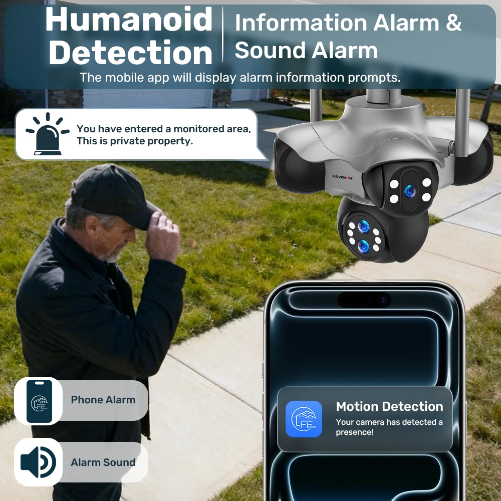 * All four screens will push alarm when they detect people. All support motion detection, human detection and inelligent.