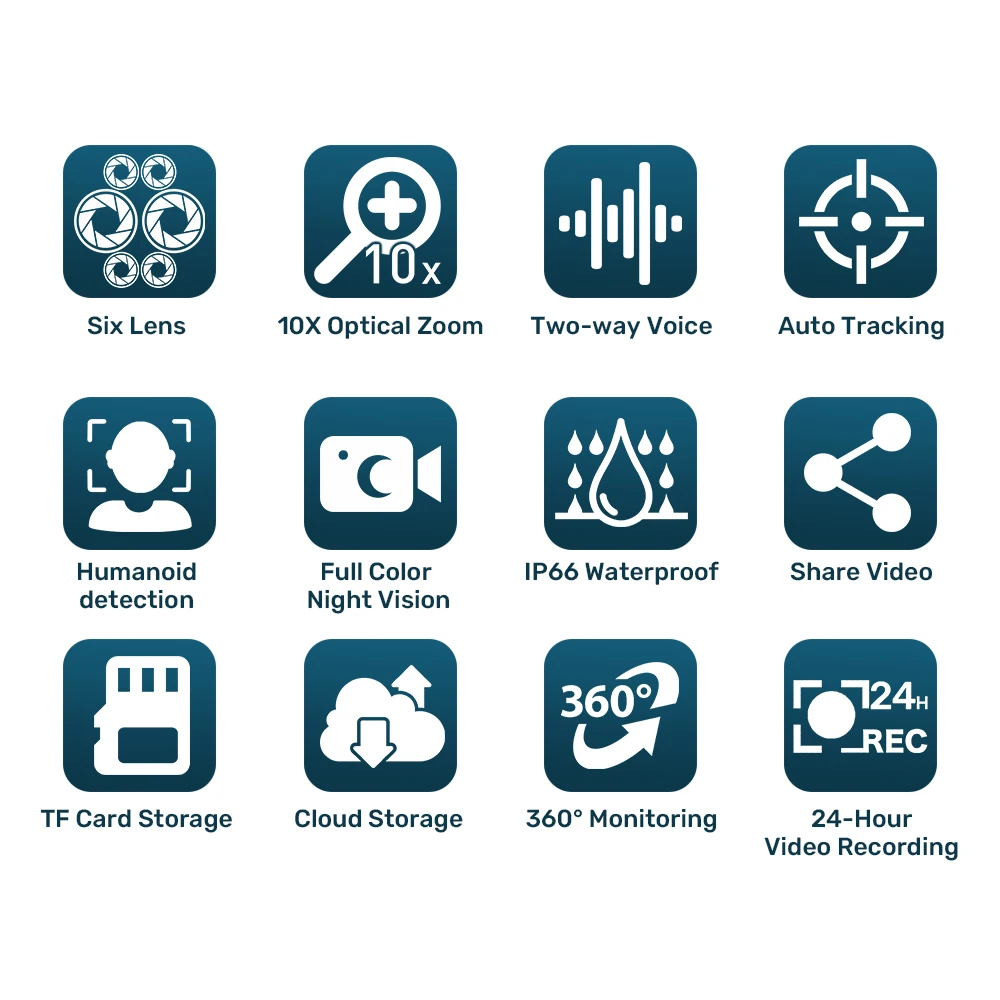– Six Lens & five-screen, 10X Optical zoom design, allowing you to see more details;