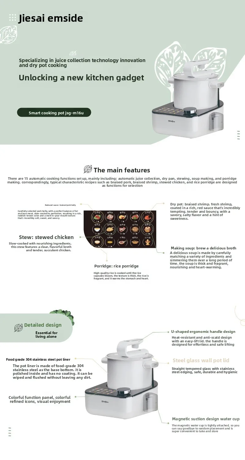 M16U Smart Cooking Robot, Multifunctional Home Cooking Pot for Lazy People, All-in-One Automatic Cooking