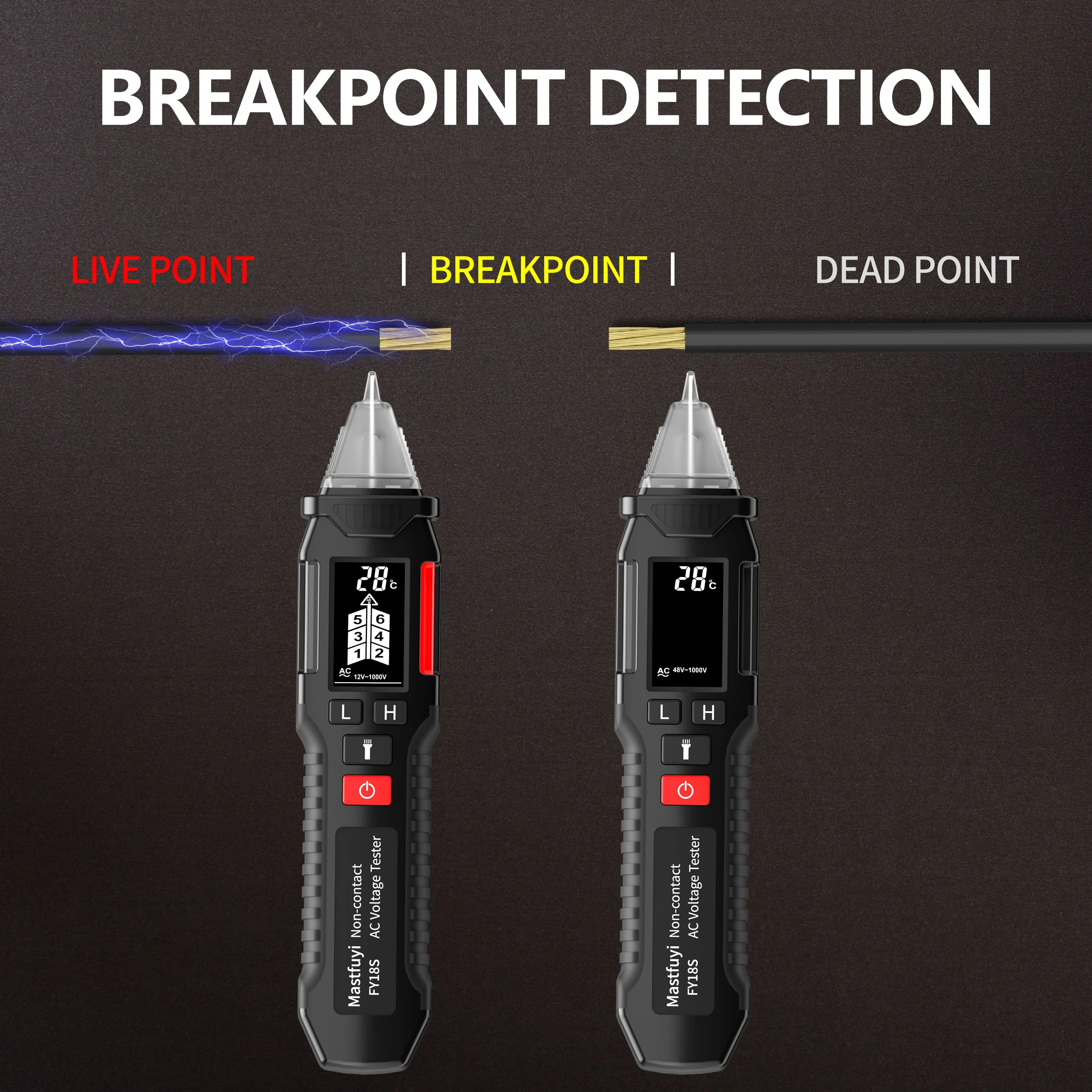 - AC Voltageetection range: H:High sensitivity(12V-1000V) L:LOW sensitivity(48V-1000V)