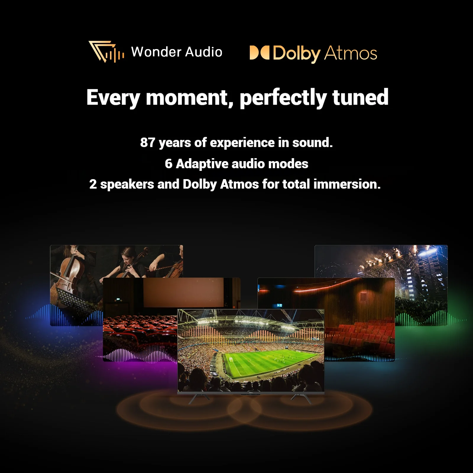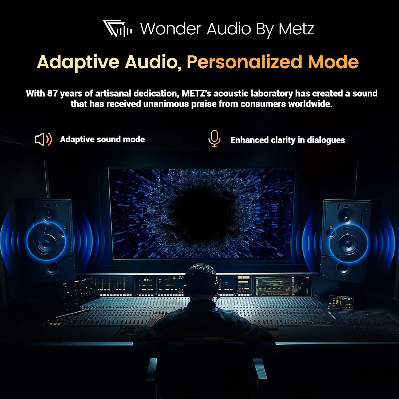 [Dolby Audio and Wonder Audio Mastery – Suitable for Every Moment] With 87 years of expertise, Metz 43 inch TV enjoy crystal clear sound with Wonder Audio. Six adaptive audio modes optimize sound every moment, delivering an immersive and balanced audio experience.