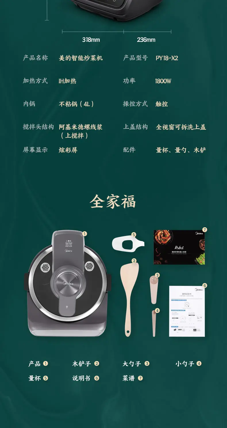 Midea PY18 – X2 Automatic Cooking Robot, 1800W High Power, IH Heating & Smoke – free Smart Home Wok