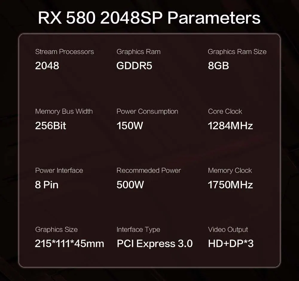 • GPU Model: AMD Radeon RX 580 8G 2048SP