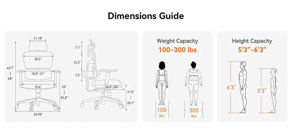 This ergonomic office chair with an adjustable backrest can adjust the backrest height up and down to meet the height needs of most people. You can adjust the sitting position with 5 locking positions and the Synchro-tilt mechanism allows for angle adjustments in 3 positions.