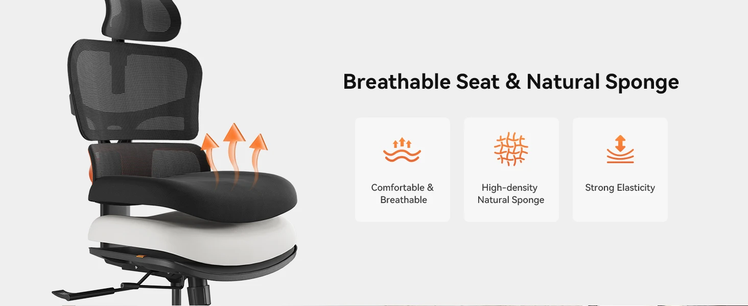 The ergonomic chair with lower back support uses breathable back mesh. The ultimate airflow can avoid sweating and sticking to the back of the office chair.