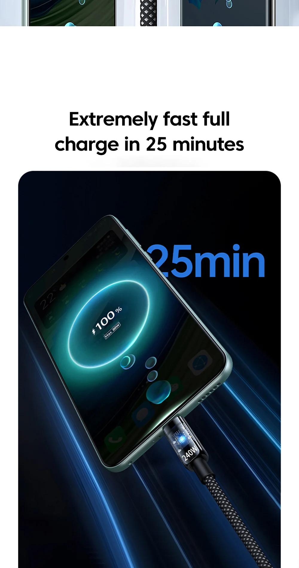 2. The charging cable can support up to 240W fast charging, but the device must also support 240W charging before it can be used, otherwise it will not be supported.