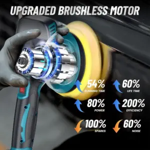 3. Easy to use: The car polisher adopts a cordless design, allowing you to carry a 12V car polisher for both indoor and outdoor use. It adopts a heat-resistant copper wire motor and a cooling system, which can work for a long time without burning out