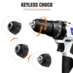 【2-Gear Speed】: Equipped with 2 Variable Speed ( 0-400RPM and 0-1400RPM), the power drill fits the wide range of drilling and screw driving applications.