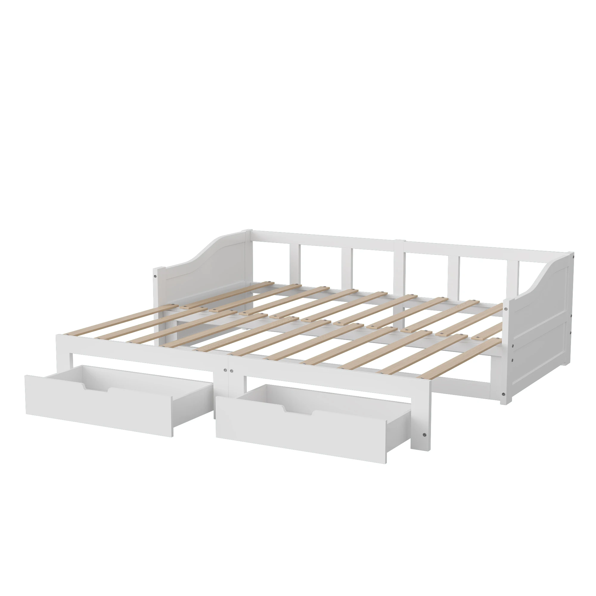 3. Platzsparendes Design – Das ausziehbare Bettgestell lässt sich leicht herausziehen und einschieben und spart so viel Platz. Ideal für kleine Räume, Apartments und Gästezimmer. Zwei zusätzliche Schubladen bieten Stauraum.