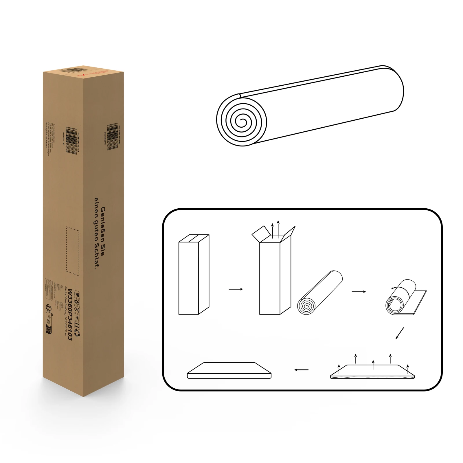 Die Matratze H3 wird effizient komprimiert und in einem Karton geliefert, leicht zu transportieren, schnell auszupacken und entfaltet sich in 24 Stunden vollständig