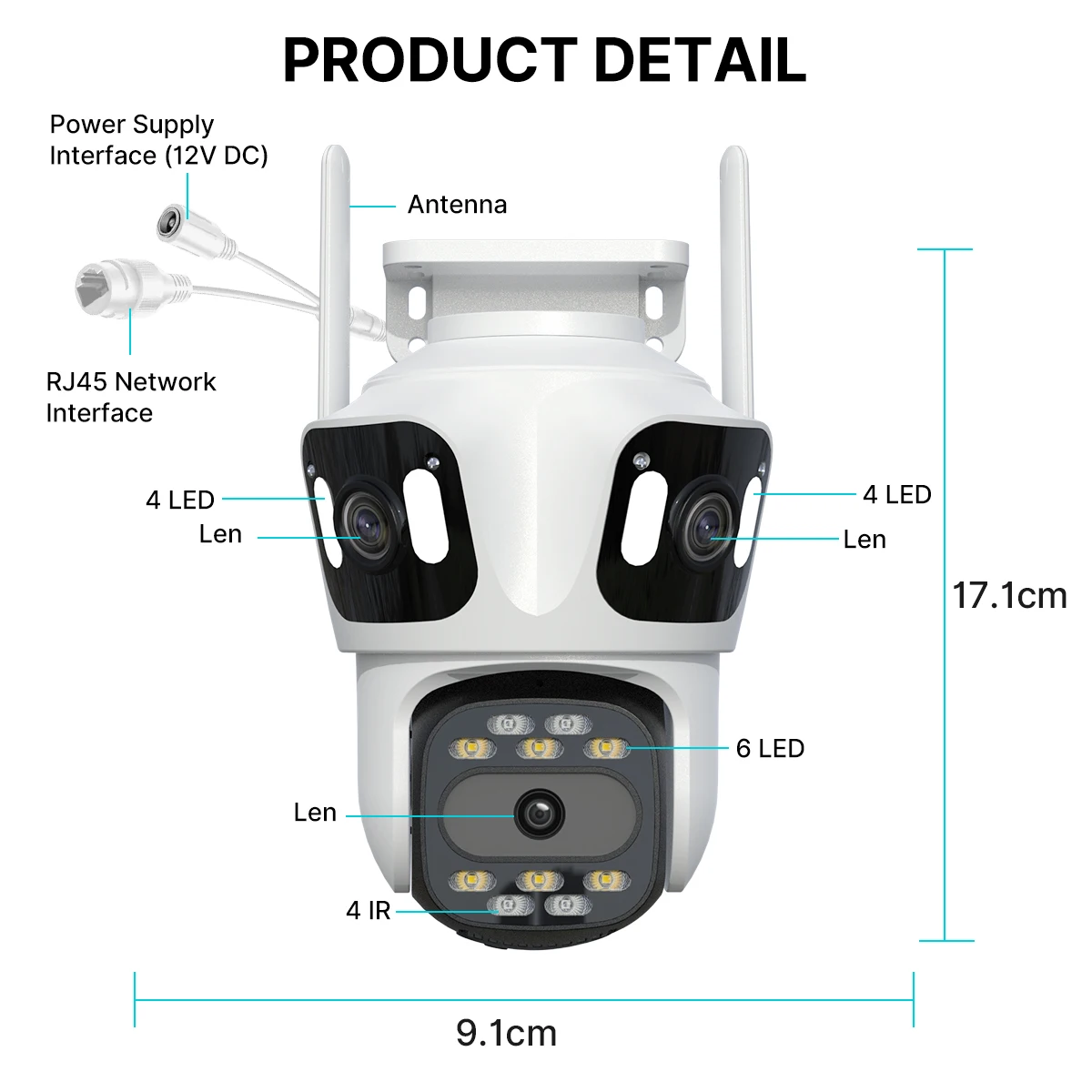 * Dual-lens Camera supports Dual screen real-time monitoring.