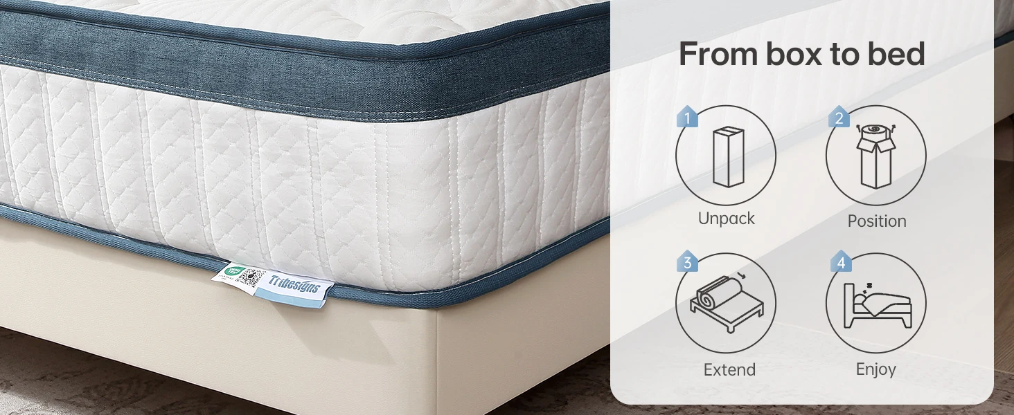 “Excellent customer service – We offer a 10-year warranty and a 100-night trial period. Our dedicated customer service team is always there for you. If our mattress isn’t right for you, we will answer your questions within 24 hours. For any complaints or questions, please contact our customer service.